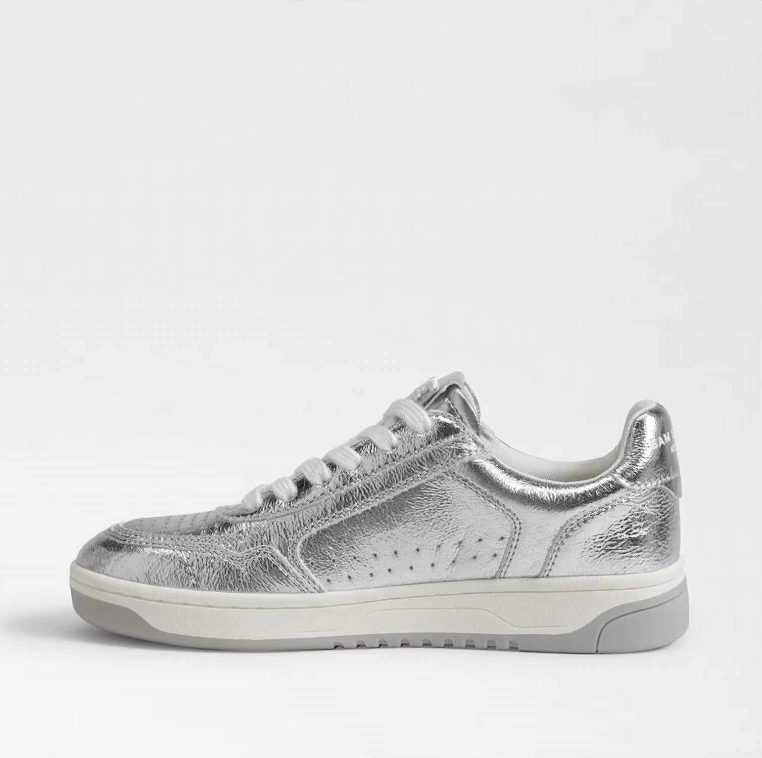 When fashion and function come together seamlessly. Discover the Women's Harper Shearling Lace Up Flat Fashion Low Top Sneakers by Sam Edelman, a chic addition to your sneaker collection with a modern twist. Featuring an almond toe design and a subtle 1.12-inch platform heel, these sneakers offer both style and comfort. Crafted from a blend of leather, fabric, and synthetic materials, they are punctuated with contrast detailing for a standout look. Perfect for fall travel and Thanksgiving outings, these versatile sneakers in soft silver are a must-have.