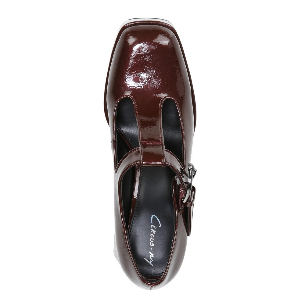 3-3/4 heel|Square-toe platform pumps with adjustable buckle at T-strap|Curved block heels|Runs true to size; order your normal size|Manmade upper; manmade lining; manmade sole|Imported