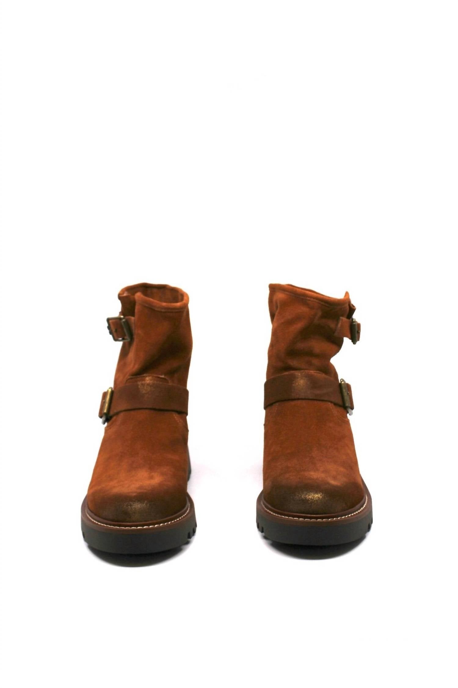 Say hello to the perfect, most versatile boot. The ankle height makes this style easily transition from day to night. Wear them with your favorite skinny jeans and tee for a more laid back look, or pair them with your favorite mini dress and jacket for a night out on the town. Chic nod to 90s fashion with a modern twist. Feature rich amber brown leather and rustic hardware with double-buckle detailing. Convenient zipper closure. Low heel height of 1.3 inches. Rounded toe for comfort. Shaft measures 6.1 inches with an 11-inch calf circumference. Synthetic insole ensures lasting comfort.