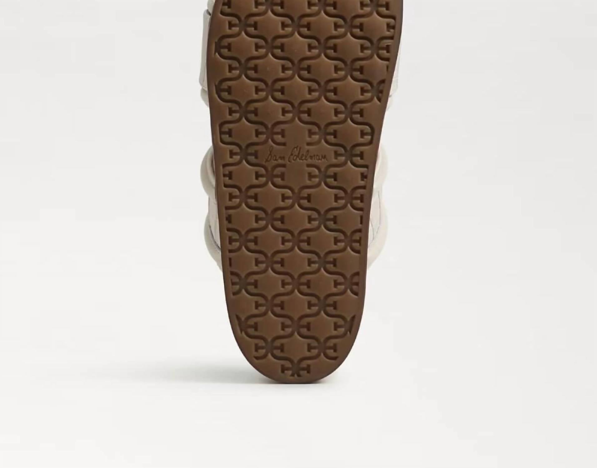 Flowy dresses, cropped pants, and even jumpsuits... this sandal works with them all! Meet the Women's Rowan Slide Footbed Sandal by Sam Edelman, a blend of chic comfort and city-savvy style in Modern Ivory Leather. Featuring a double-banded basketweave design with chunky piped trim and bit detail, these sandals are crafted from high-quality leather and other materials, offering enduring style and durability. The sandals include adjustable straps across the instep and around the ankle for a customizable fit, along with a subtle 1.3-inch platform height for a gentle lift. Designed with an open toe and croc-embossed pattern, these sandals promise both visual appeal and all-day cushioned support.