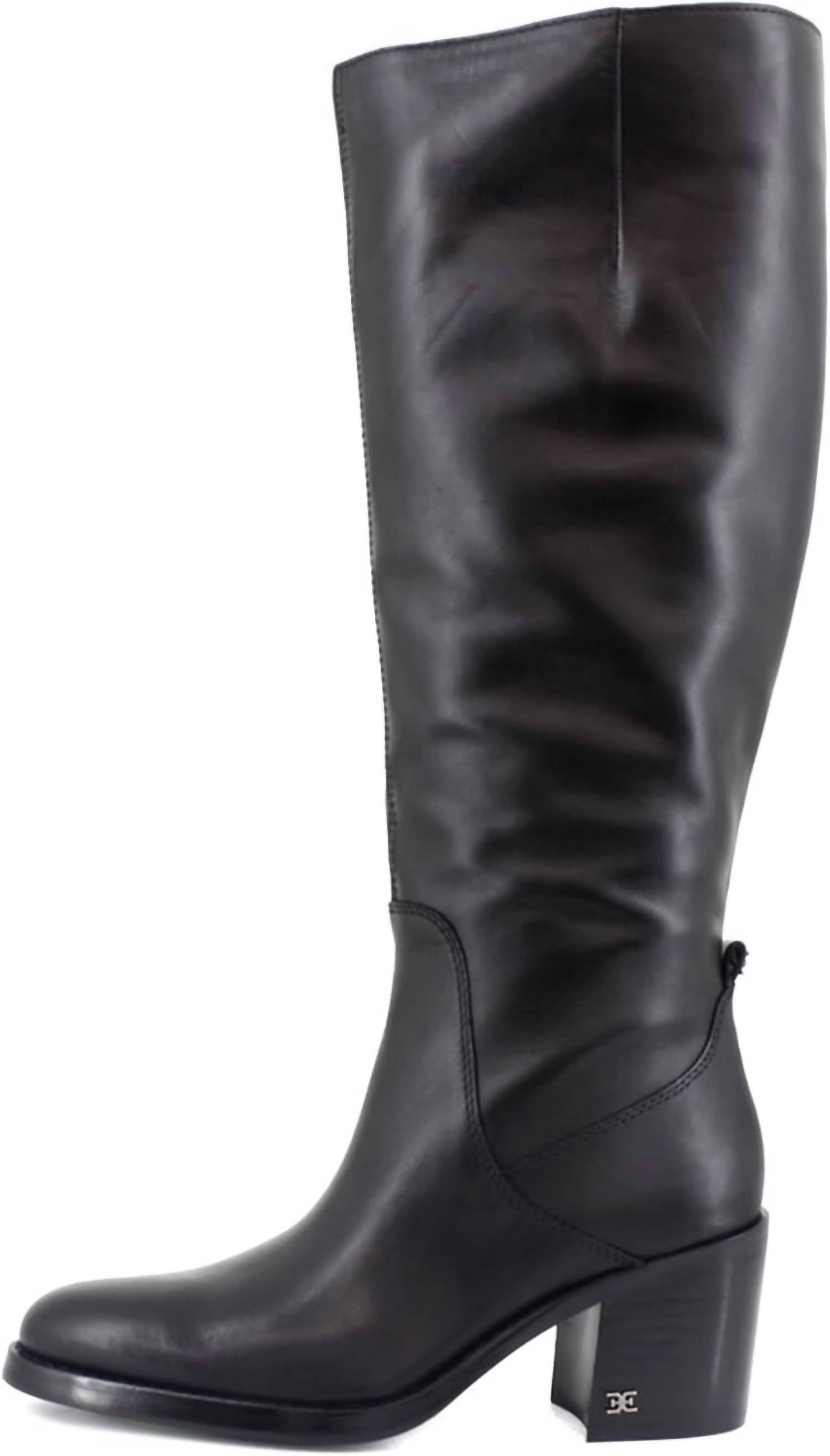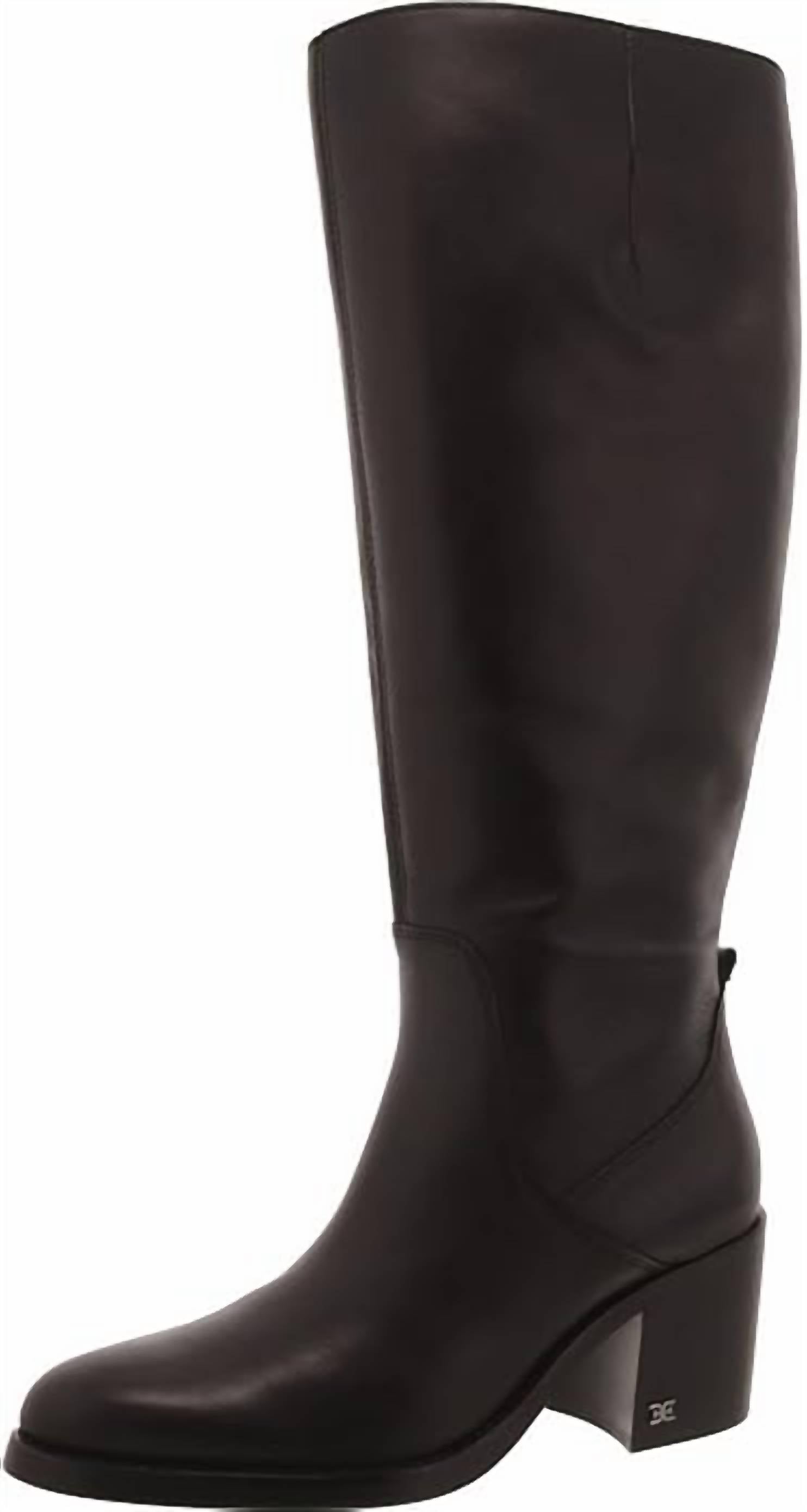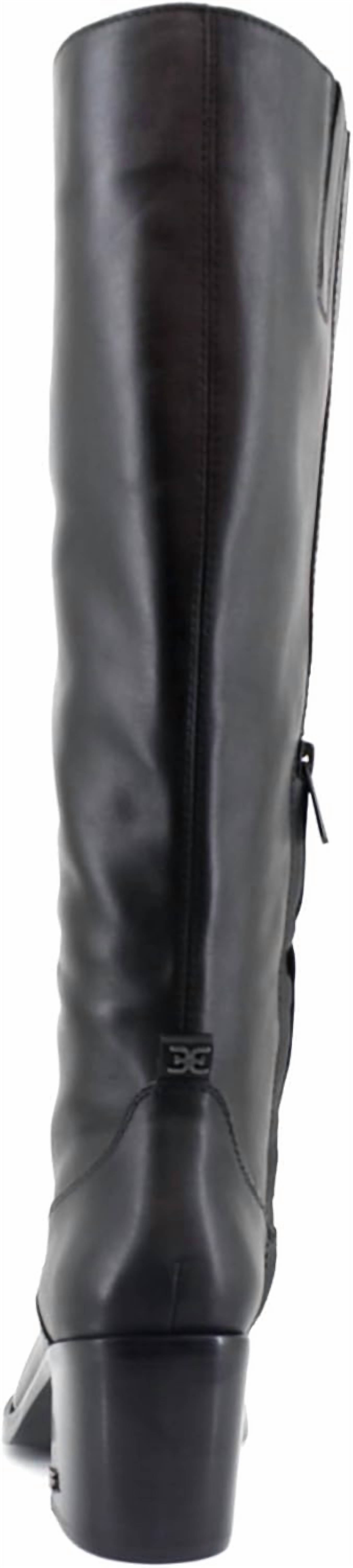 Upgrade your shoe game with these classic heeled boots, designed to merge sophistication and style. Comfortable enough for long days or a night out on the town. Step out with confidence in the Women's Soyer Wide Calf Knee High Boot by Sam Edelman, designed to merge biker vibes with city chic. Crafted from luxurious black leather, this knee-high boot features a sleek almond toe and a comfortable block heel, standing at 2.7 inches. The boots boast a zipper closure and a calf circumference of 16 inches, ensuring a perfect fit for your everyday style. These boots highlight minimalist trends and are ideal for travel occasions during the fall season.