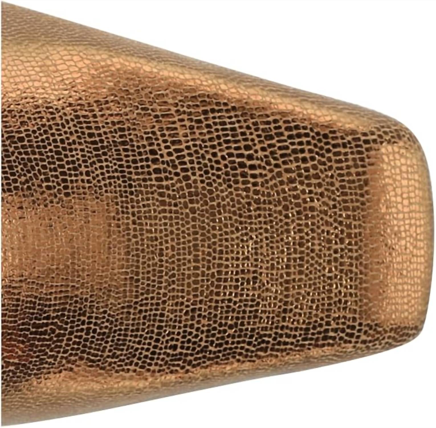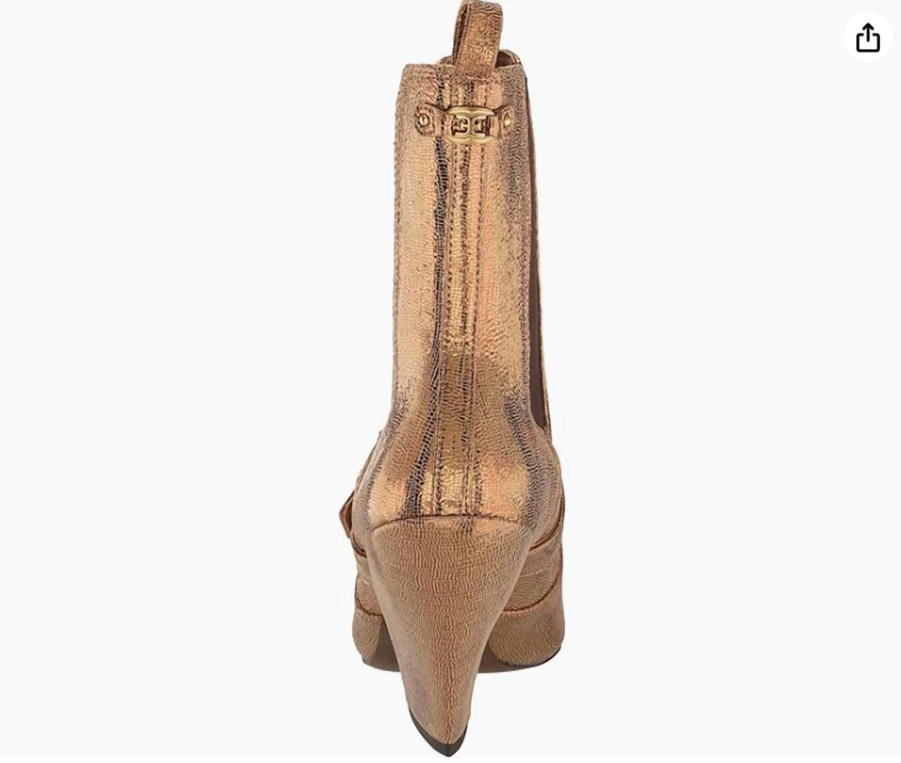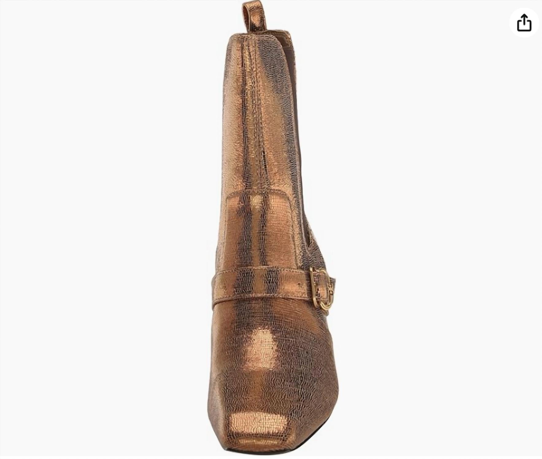 A stylish boot with a comfortable fit and the perfect amount of height. These classic boots are the perfect addition to any outfit and can be worn season after season. Step into sophistication with the Suzette Buckle Western Ankle Bootie by Sam Edelman, crafted for the stylish woman. These striking boots in Deep Gold feature a glossy leather upper with a synthetic lining and foam footbed. Embrace the bold silhouette with an angular square toe and a charming 3.4-inch flared block heel, perfectly complemented by side elasticized panels and a buckle detail at the ankle. Made in adherence to global recycled standards, these boots boast a 6-inch boot shaft and a 9.5-inch calf circumference, ideal for adding an elegant touch to your evening events this Fall.