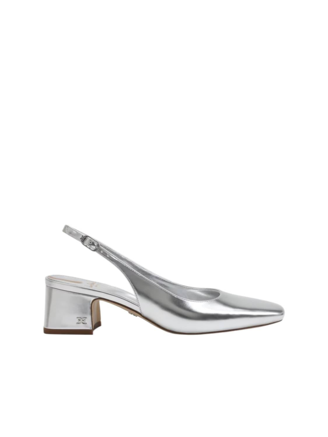 Pair these beauties with your favorite skinny jeans or dress for a night out on the town. Introducing the Women's Terra Slingback Heel by Sam Edelman, a minimalist masterpiece in Soft Silver Leather. Featuring a luxurious leather upper with a sophisticated squared closed toe, these heels are perfect for professional and formal occasions. The buckle closure on the slingback strap ensures a secure and adjustable fit, while the 2-inch block heel offers a stable lift without compromising comfort. Crafted with a synthetic lining and rubber sole, these heels promise a blend of style, comfort, and flexibility, ideal for your next evening event.