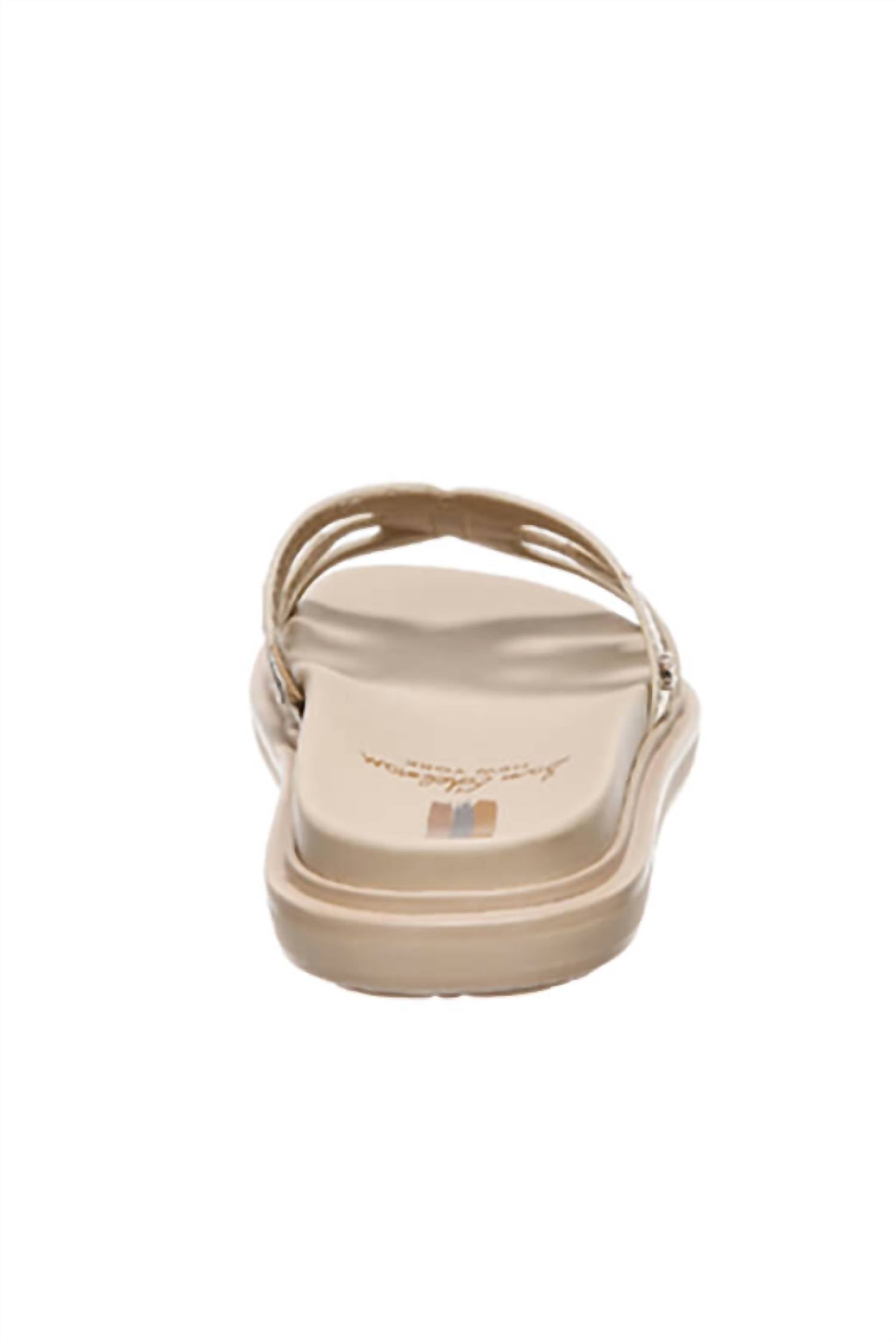 Classicly cute and all-day-wearable. We love this sandal. Step into the Sam Edelman Women's Valeri Slide Sandal, a modern twist on a timeless style. Crafted from Gold Leaf Leather, this sandal features an open toe design and a comfortable slip-on closure. With a cushioned footbed, it offers all-day comfort on a .5-inch platform heel. Ideal for the fashion-forward woman, these sandals effortlessly combine style and ease.