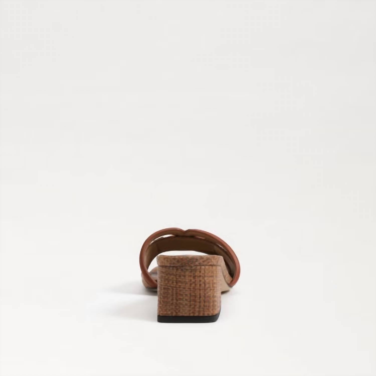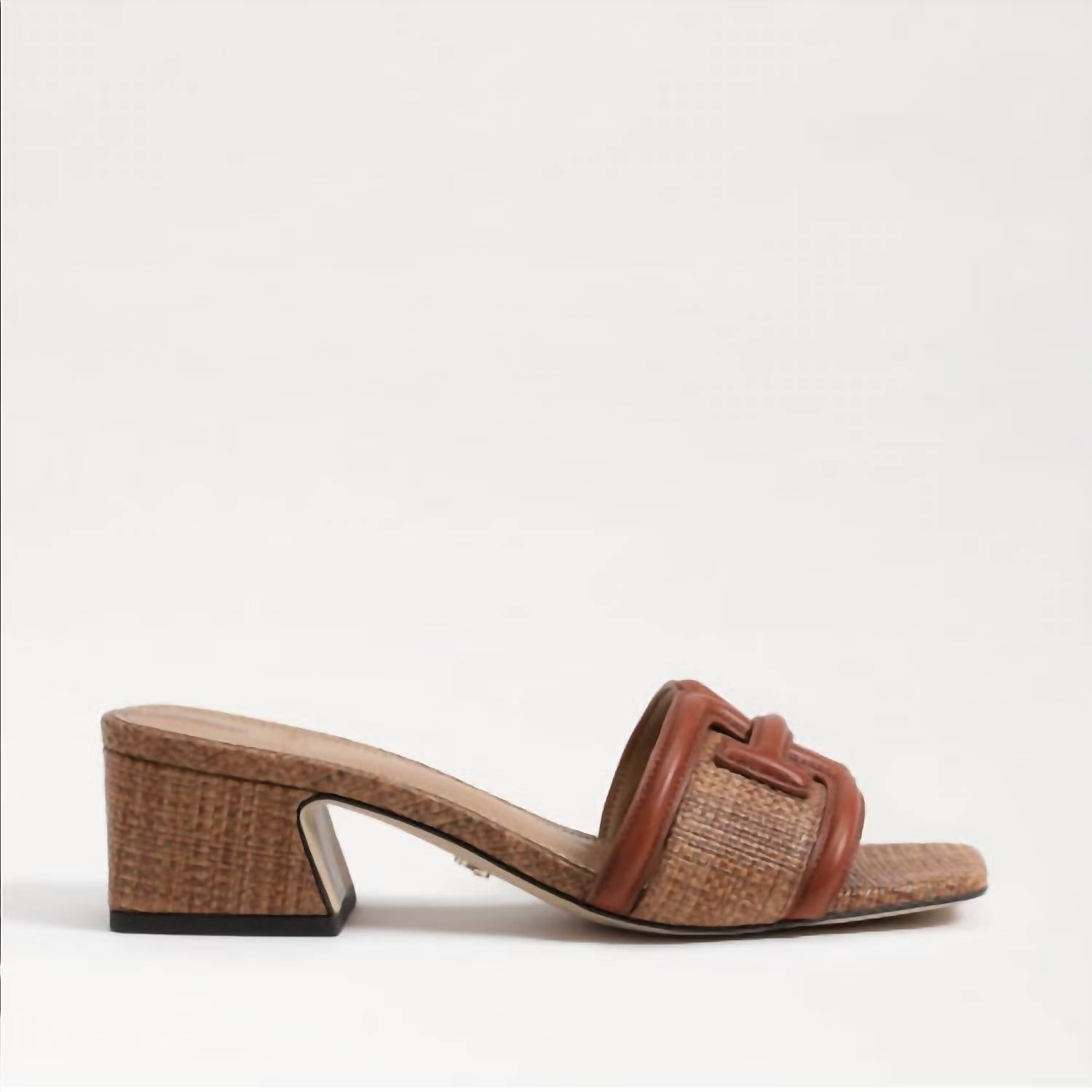 Classicly cute and all-day-wearable. We love this sandal. Step into style with the Women's Waylon Slide Sandal by Sam Edelman, crafted in a rich cognac weave. Featuring a comfortable low block heel of 1.75 inches, these sandals boast a sophisticated squared open toe and are designed with a practical buckle closure. Made from a blend of leather, fabric, and synthetic materials, they are finished with a synthetic insole for added comfort. Perfect for a dinner party or embracing 90s fashion, these sandals are a Spring essential.