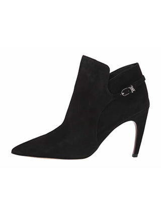 Sam Edelman Women's Padded Buckle Accent Logo Fiora Pointed Toe Stiletto Zip-up Leather Black Size 7.5 M