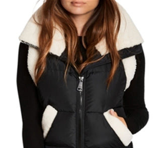 Sam Edelman Women's Billie Sherpa Trim Puffer Vest Black Size Medium
