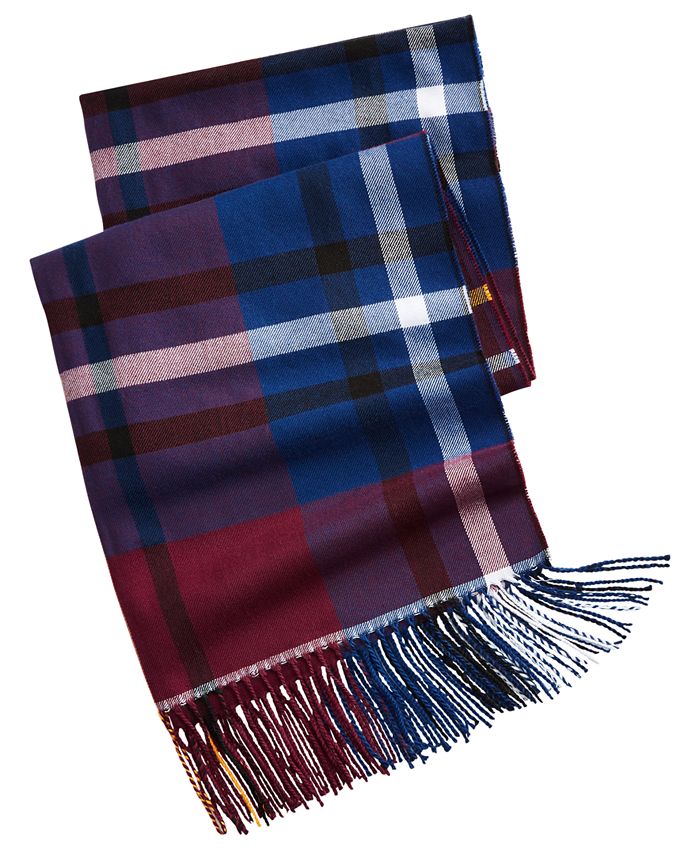 Add some classic style to your cold-weather look with the timeless plaid and fringe trim of this scarf from Club Room. | Approx. dimensions; 70 x 24 | Plaid pattern; fringe trim| | Polyester| Machine washable| Imported