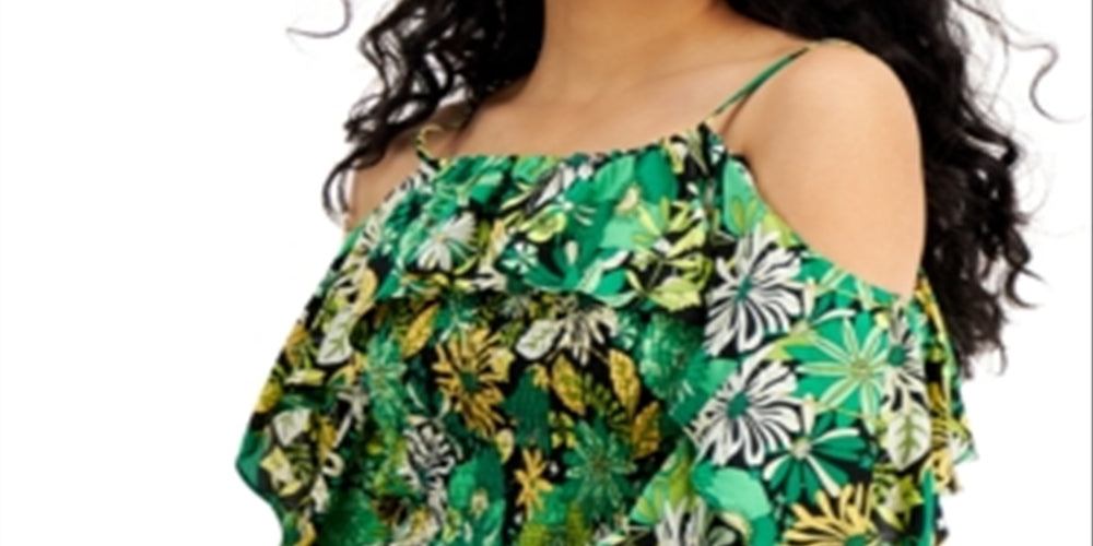 Make an ultra-stylish statement in this INC International Concepts® printed top styled with a fitted smocked bodice| bold ruffles and chic cold-shoulder cutouts. | Scoop neckline with ruffle| Cold-shoulder cutouts; smocked fitted bodice| Long sleeves with ruffle| | Rayon