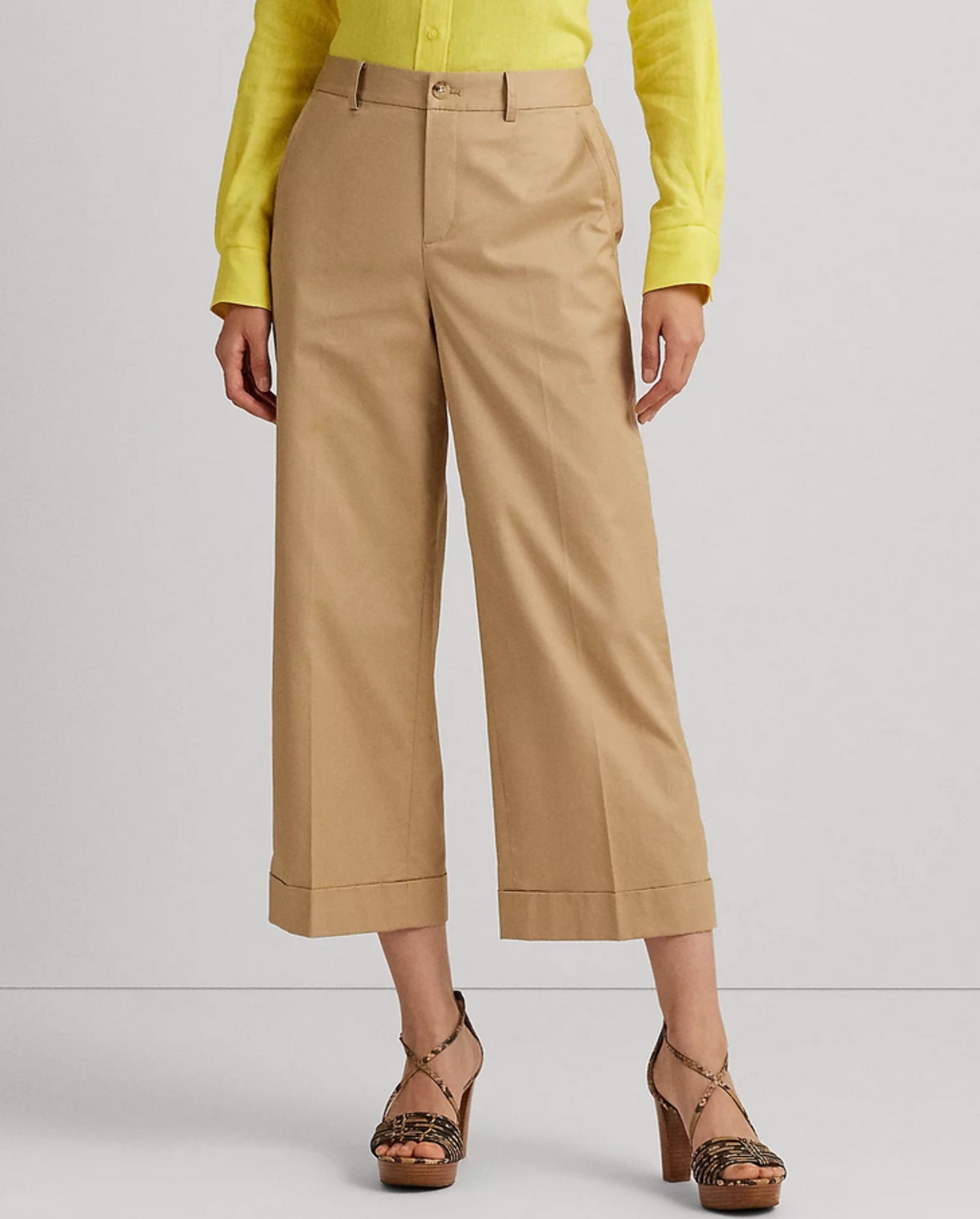 Lauren Ralph Lauren Women's Pleated Cotton Twill Cropped Pants Birch Tan Size 16