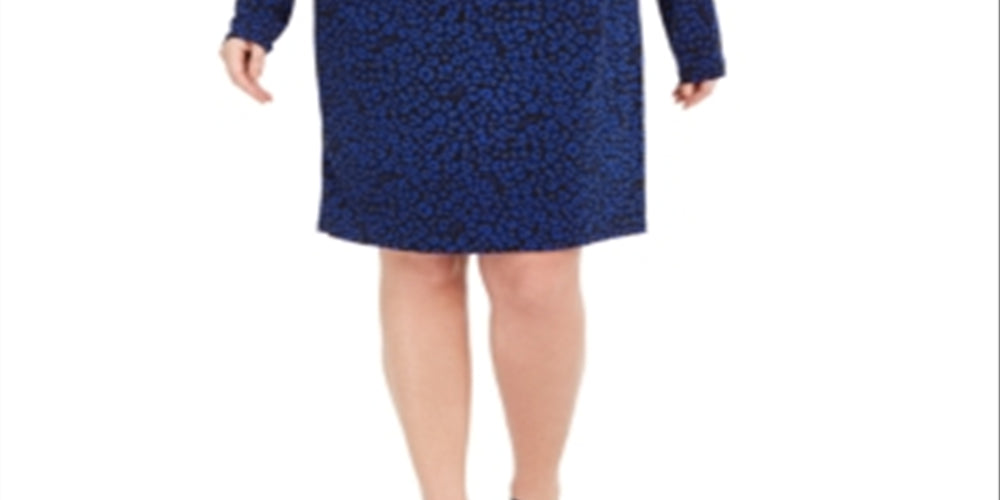 Michael Kors Women's Plus Animal Print Cowlneck Dress Blue Size 3X