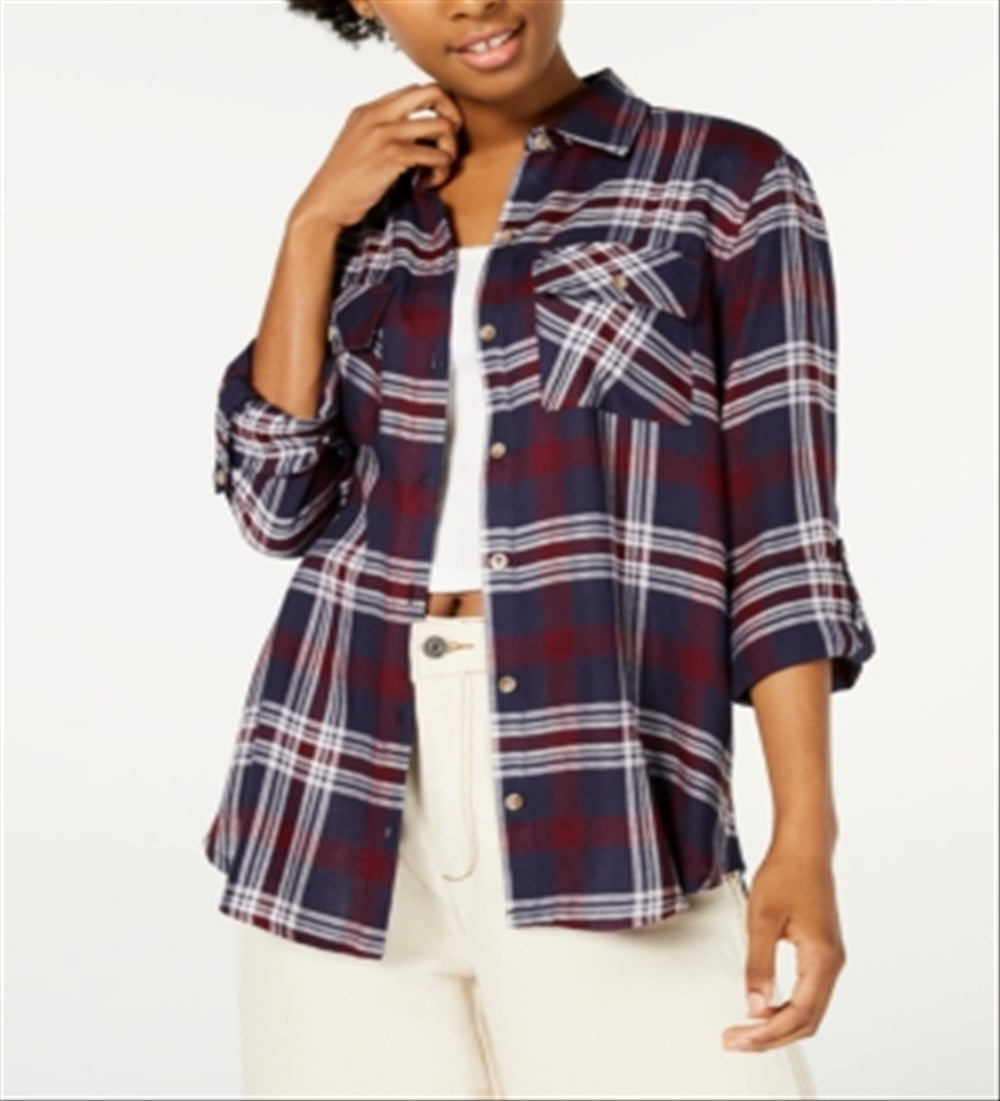 A staple that's never going out of fashion| Polly & Esther's plaid utility shirt styles so many ways that you can always find new looks for it|