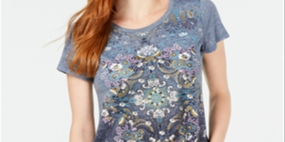 Style & Co's printed petite T-shirt is designed with a handkerchief hem that sweeps and sways with every step and an elongated hem for a layered-look.| Relaxed fit; hits at hip| Designed to fit and flatter 5'4 and under frame| V-neckline| Layered-look handkerchief hem; embellished details in graphic at front| | Polyester/cotton