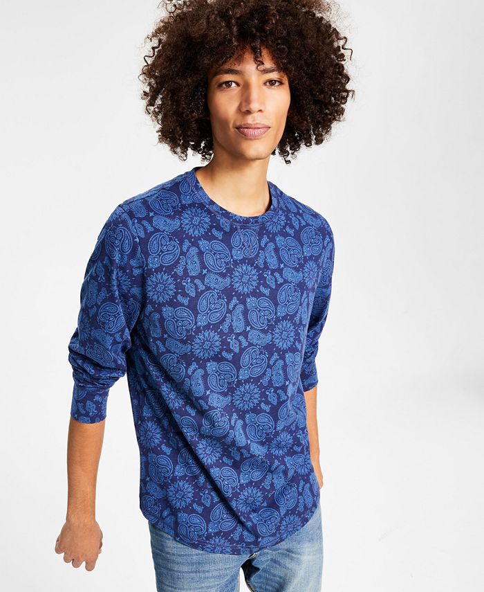 A tonal bandana print plays out across this long-sleeve T-shirt from Sun + Stone| offering a look for your wardrobe that is both bold and classic.| Crewneck with V-inset| Bandana-print pattern| | Cotton/Repreve™ Recycled Polyester| Machine washable