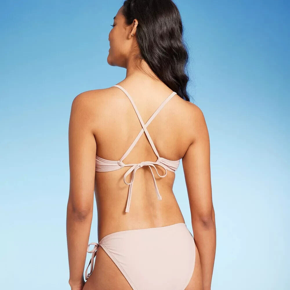 Striped design | Crochet craftmanship | Bralette style | Brown color | Bikini top | Wild Fable brand | Size S | Womens swimwear | Adjustable straps | Back hook closure