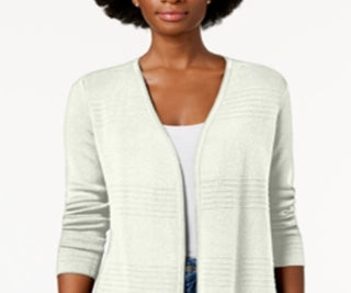 Charter Club Women's Ribbed Knit Open Front Cardigan White Size X-Large