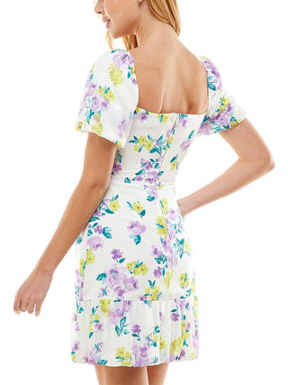 City Studios Women's Party Neutral Floral Print Mini Sheath Dress White Size 10