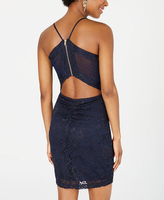 Emerald Sundae Juniors Spaghetti Strap V Neck Mini Evening Dress Blue Size XS