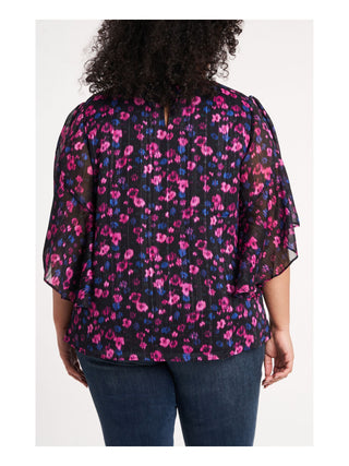 Vince Camuto Women's Floral Print Flutter Sleeve Blouse Pink Size 3X