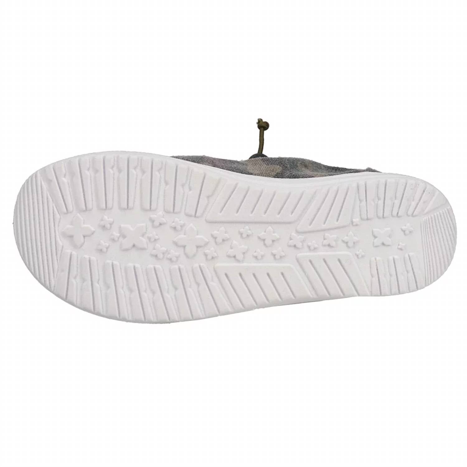 Cute, functional, and comfortable. These sneakers check all the boxes. Ultimate blend of style and comfort. Trendy sneakers feature a chic green camouflage canvas upper. Perfectly paired with adjustable elastic straps. Impeccable fit. Slip-on design ensures effortless wear. Boast added padding at the rear ankle. Offering unparalleled cushioning and support. Removable insole allows for easy customization. Durable rubber outsole provides reliable traction on various surfaces.