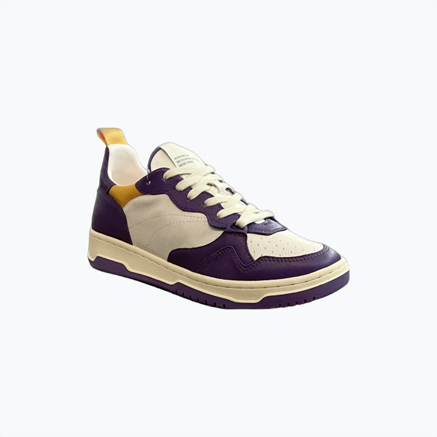 When fashion and function come together seamlessly. Step up your sporty casual style in Purple. Low-top sneakers feature a contrasting color design and perforated round toe. Crafted with a leather upper and synthetic lining for added comfort. Enjoy a secure fit with a classic lace-up closure and a padded tongue and collar for extra cushioning. Made with a synthetic rubber outsole. Lightweight at 10 oz, medium width.