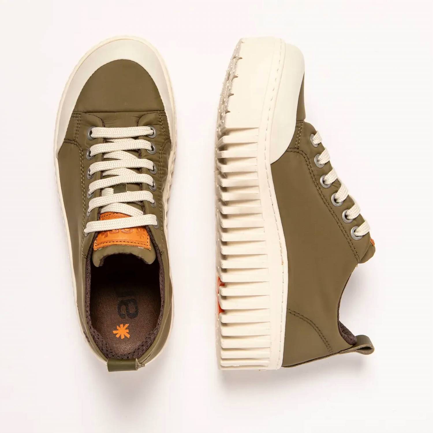 Cute, functional, and comfortable. These sneakers check all the boxes. Introducing the Women's Brighton Nylon Sneaker by The ART Company, a stylish platform shoe crafted for comfort and empowerment. Made with durable khaki nylon and featuring a 1.57-inch platform heel, these sneakers prioritize both lightness and support. Closure comes in the form of practical laces, complemented by a removable insole and the innovative SOFTLIGHT outsole for ultimate comfort. Enjoy the blend of authenticity and freedom with 360° stitching craftsmanship in every step.