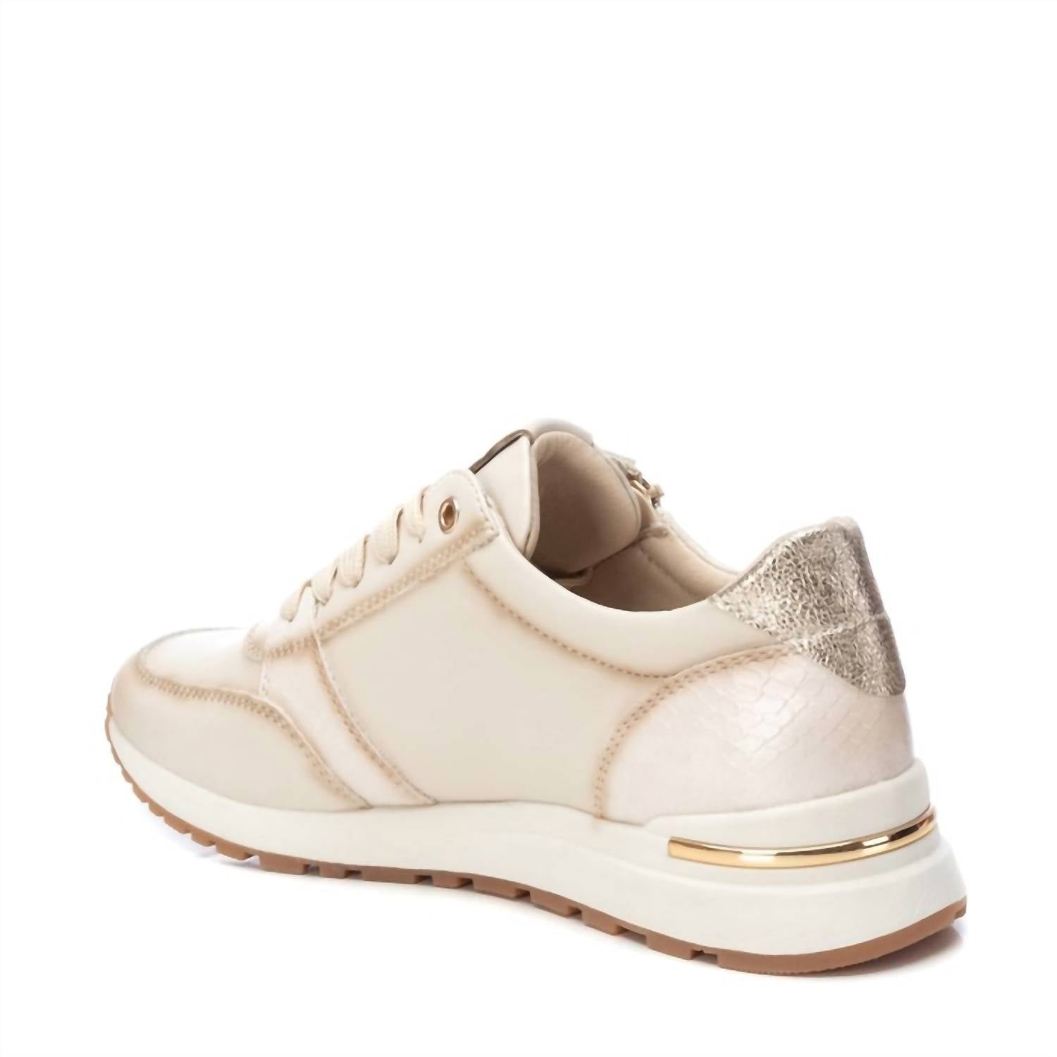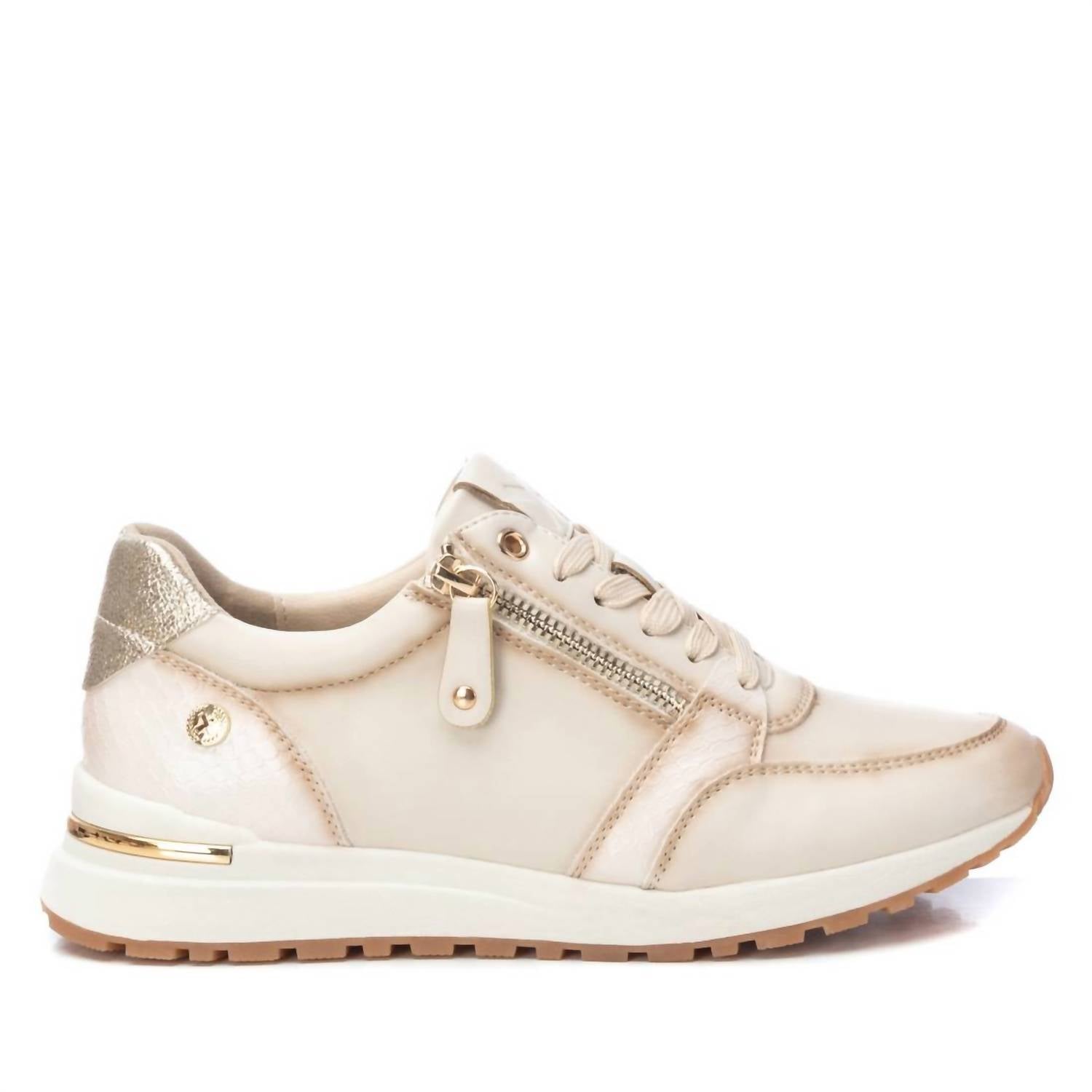 Cute, functional, and comfortable. These sneakers check all the boxes. This Trainer Sneaker is crafted from faux leather with a lace-up closure and side zipper for a secure fit. It features a non-slip rubber sole, removable insole, and a low wedge heel for added comfort, perfect for casual wear. Made with certified vegan materials.