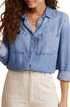 The Bella Dahl Two Pocket Chambray Button-Up Shirt is the epitome of effortless style, perfect for casual outings or dressed-up occasions. Crafted from lightweight chambray material, this shirt offers a soft touch and breathable comfort. The hidden-button placket maintains a sleek appearance while adding to its chic appeal. Featuring twin chest pockets, this shirt merges functionality with a trendy aesthetic. With a length of 26 inches, it's designed to flatter various body types. Made from 100% Tencel lyocell, a sustainable fabric known for its eco-friendly production, this shirt underscores environmental consciousness without sacrificing style. Ideal for women looking for a versatile wardrobe staple that can easily transition through seasons, the Bella Dahl shirt is machine washable and easy to care for, ensuring practicality in everyday wear.