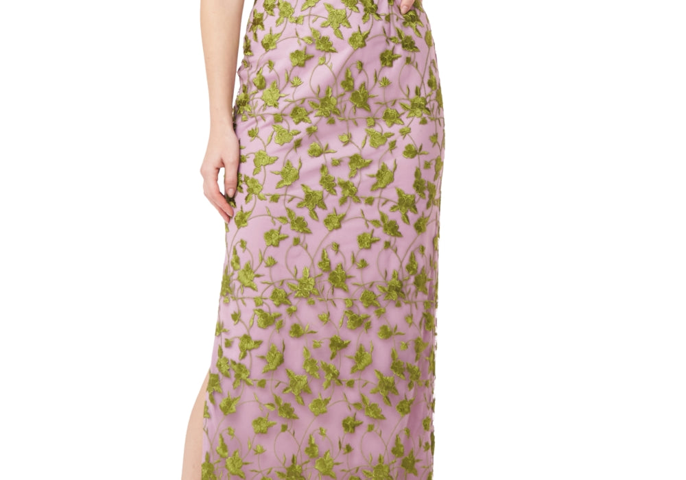 Amethyst/Chartreuse Color | Cold Shoulder Design | Embroidered Detailing | Column Silhouette | Size 2 | Sold at Nordstrom | Js Collections Brand | Formal Gown | Floor Length | Hidden Back-Zip Closure