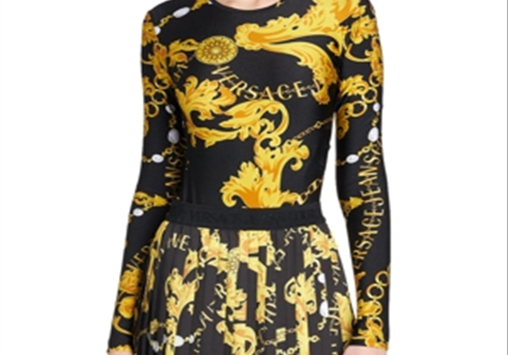 Versace Jeans Couture Printed Bodysuit Black Size 38 REG