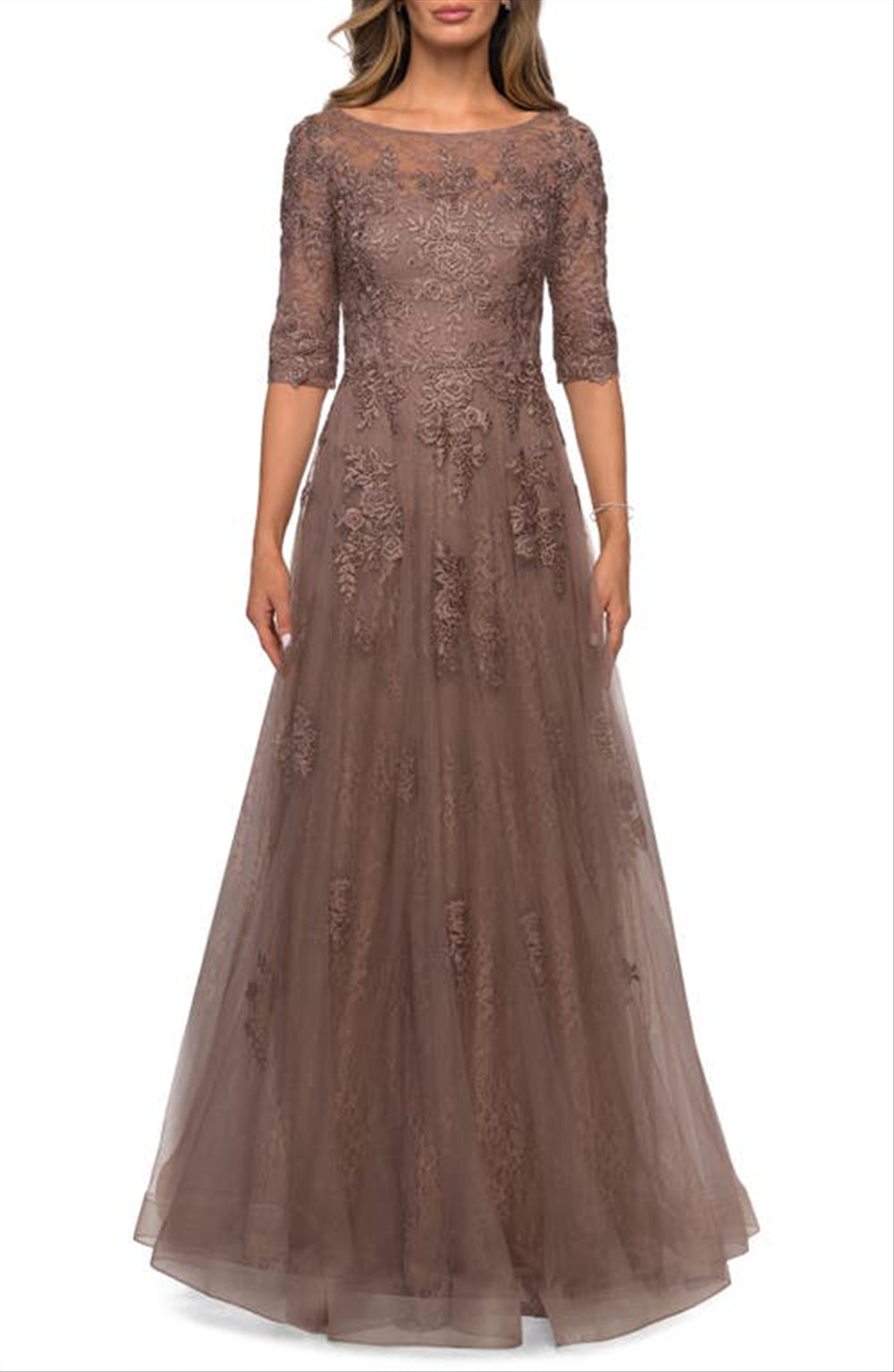 Dessy Collection Women's Midnight Notched Off the Shoulder Gown Size 12