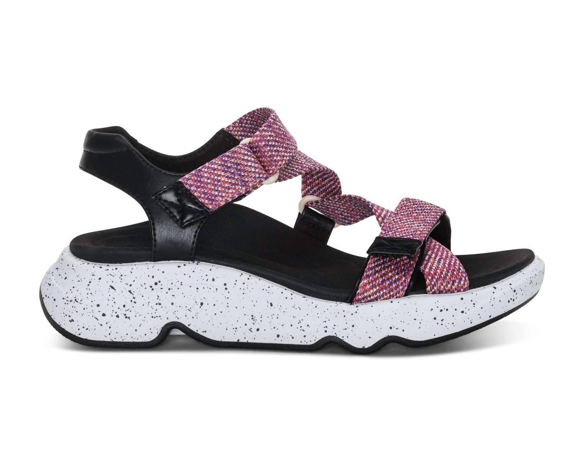 Classicly cute and all-day-wearable. We love this sandal. Step out in comfort and style with the Aetrex Women's Marz Sandal, perfect for streetwear aficionados. Designed with breathable faux leather straps treated with antimicrobial technology, these sandals ensure freshness with every step. Featuring easy-to-use hook and loop closures and a supportive arch, they sit atop a durable rubber outsole with a lightweight UltraSky™ midsole for unmatched comfort. With a low 1.85" wedge heel and a padded heel and collar, they're water-friendly and perfect for various terrains, making them a go-to choice for all-day wear.