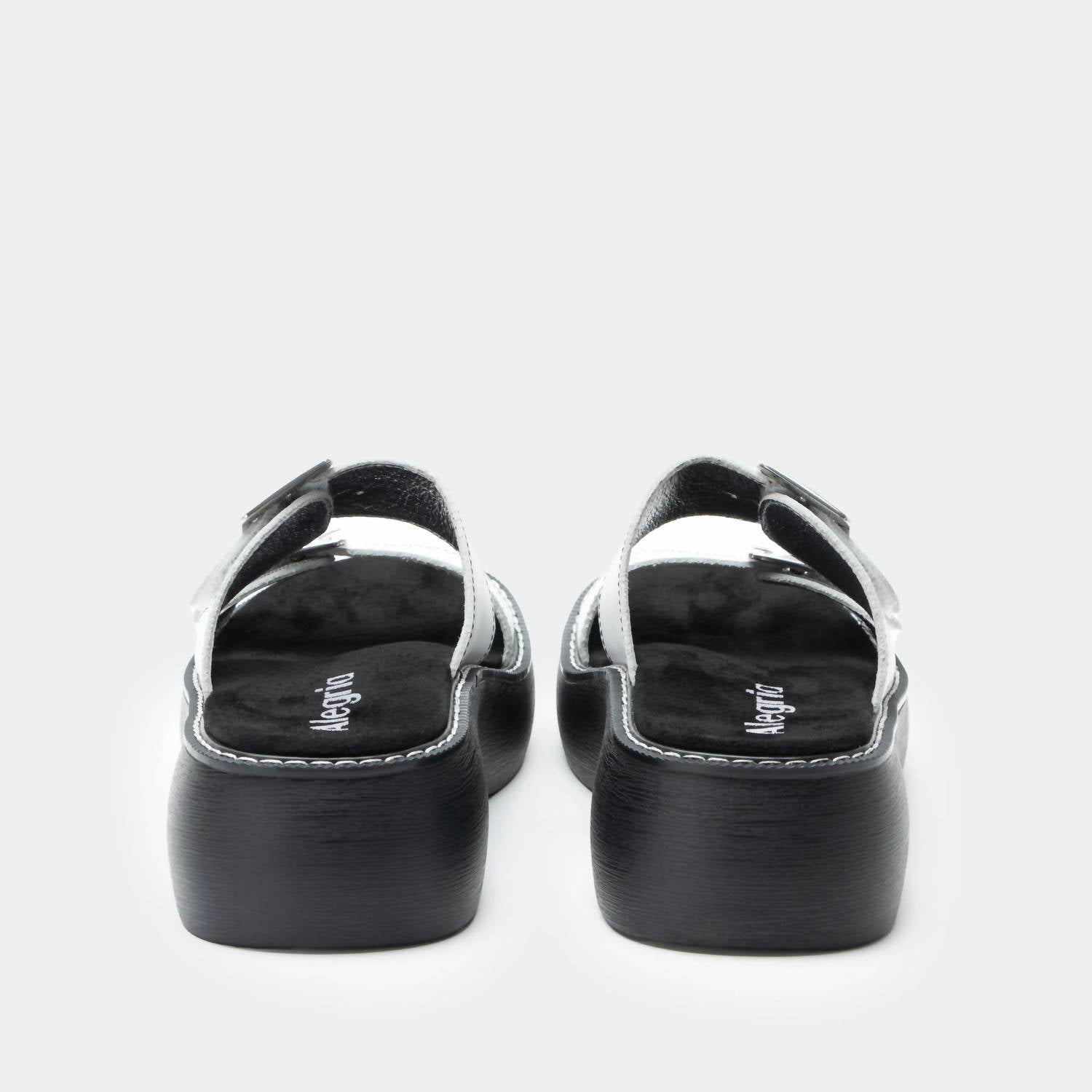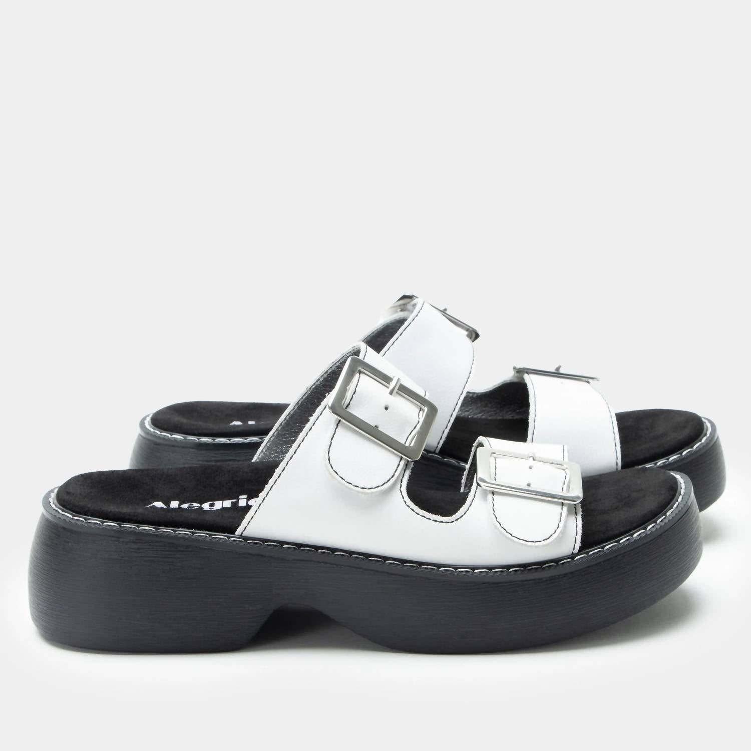 Flowy dresses, cropped pants, and even jumpsuits... this sandal works with them all! Step into '90s nostalgia with the Iza Sandals by Alegria, featuring a stylish platform heel in a chic white leather colorway. Designed for adult women with an open toe, these sandals showcase two adjustable hook-and-loop closures adorned with decorative buckles for a custom fit. The ultralightweight one-piece polyurethane outsole is both slip-resistant and non-marking, providing durability and comfort. Enjoy the 1.75" heel height that adds a touch of elevation while the cork polyurethane and memory foam footbed ensure all-day comfort. Ideal for both casual summer outings and holiday parties, these sandals are a key addition to your boho chic wardrobe.