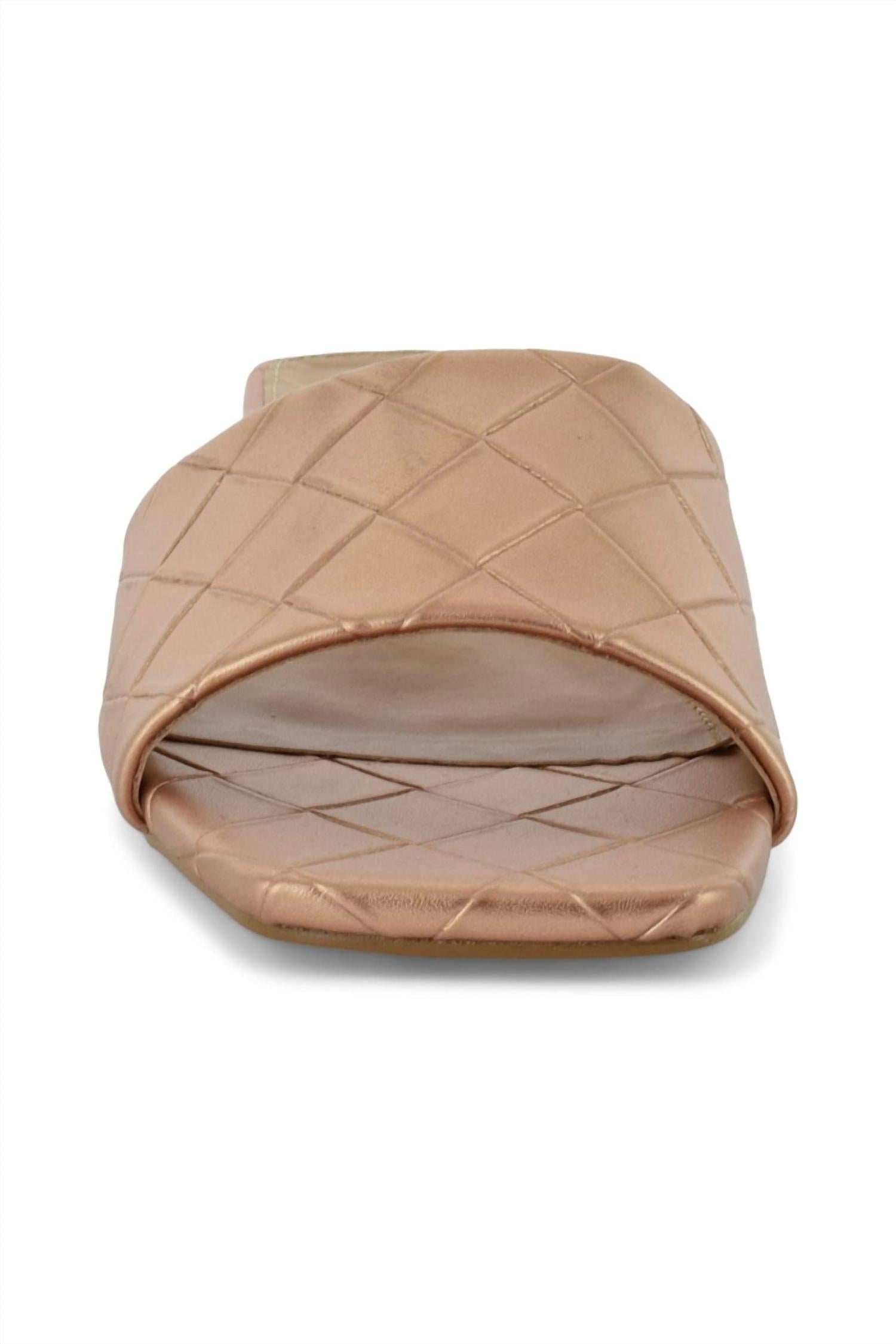This sandal will take you from brunch to dinner and everything in between. Step into summer with the Parma Leather Sandal by Articles of Society, an elegant addition to your warm-weather wardrobe. Crafted in a luxurious rose gold leather, these sandals sport a chic square-toe silhouette enhanced by a stylish braided slide design. Featuring a flat heel that's perfect for vacation strolls and New Year's Eve celebrations, they seamlessly complement a range of outfits, from casual denim shorts to flowing sundresses. Please note, they are true to size but may not be suitable for wider feet.