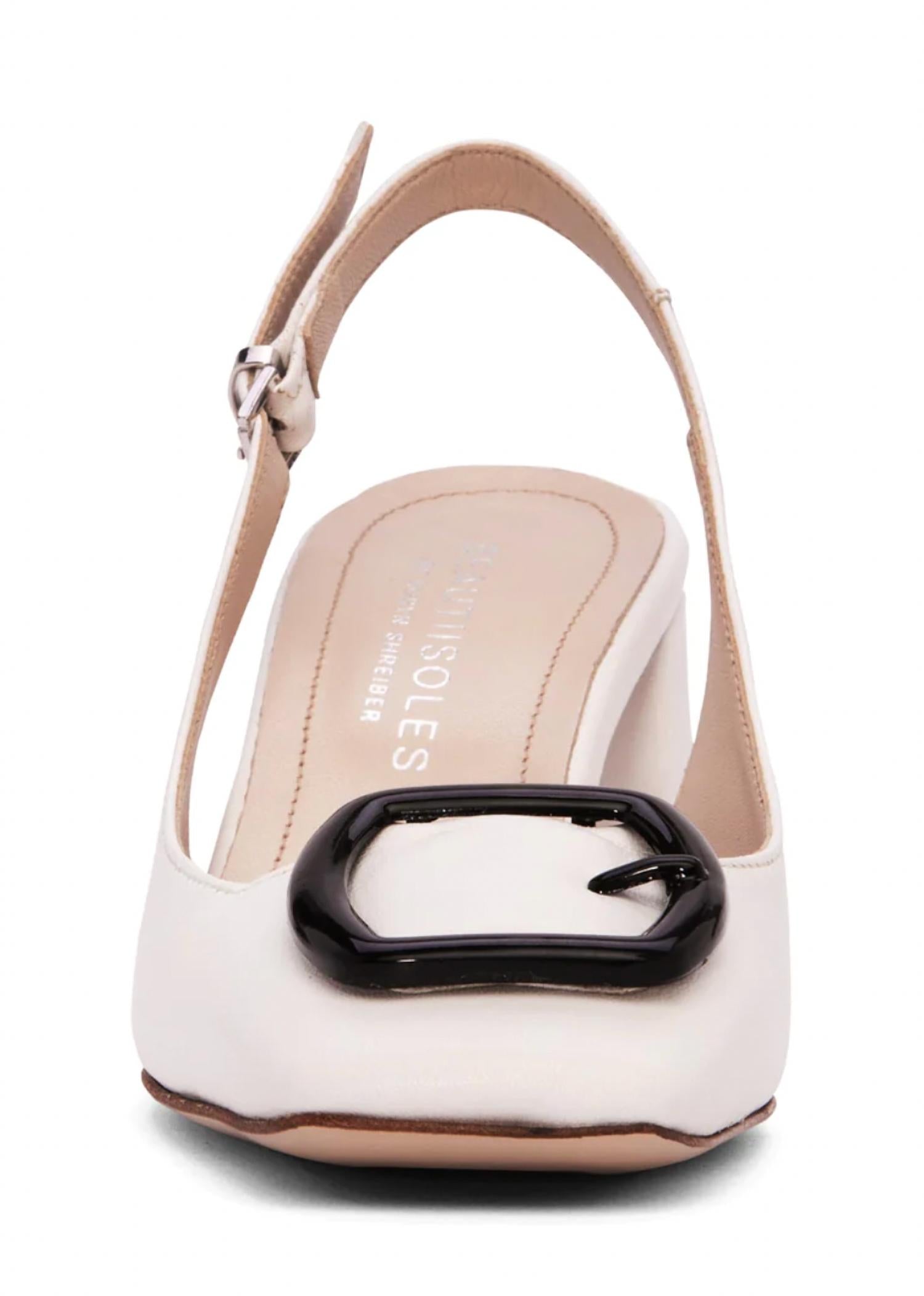 Classicly cute and all-day-wearable. We love this sandal. Experience sophistication with the Women's Duchess Sandals by BEAUTIISOLES by Robyn Shreiber, a luxurious addition to any wardrobe. Crafted in Italy with a breathable leather upper and lining, these sandals boast a stylish 2-inch flare block heel and a chic square toe. Adorned with a decorative buckle, they feature a closed toe and adjustable ankle strap for a customizable fit. With a 0.23" memory foam insole, these sandals ensure comfort without compromising style. Color: White.