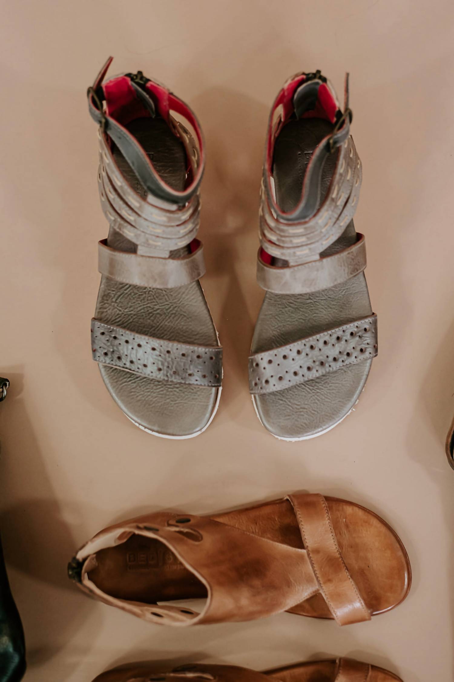 Elevate your sandal collection with the ARTEMIA Leather Zipper Platform Sandals by BEDSTU in Tonic Breeze Rustic. Crafted from chrome-free, vegetable-tanned leather, these sandals feature a padded footbed, decorative perforations, and stitch details for a whimsical touch. The platform adds 1.5" in height, designed with a flat heel style, making them perfect for both spring and summer occasions. Made in Leon, Mexico, these sandals include a convenient back zipper and ankle strap with buckle for easy wear.