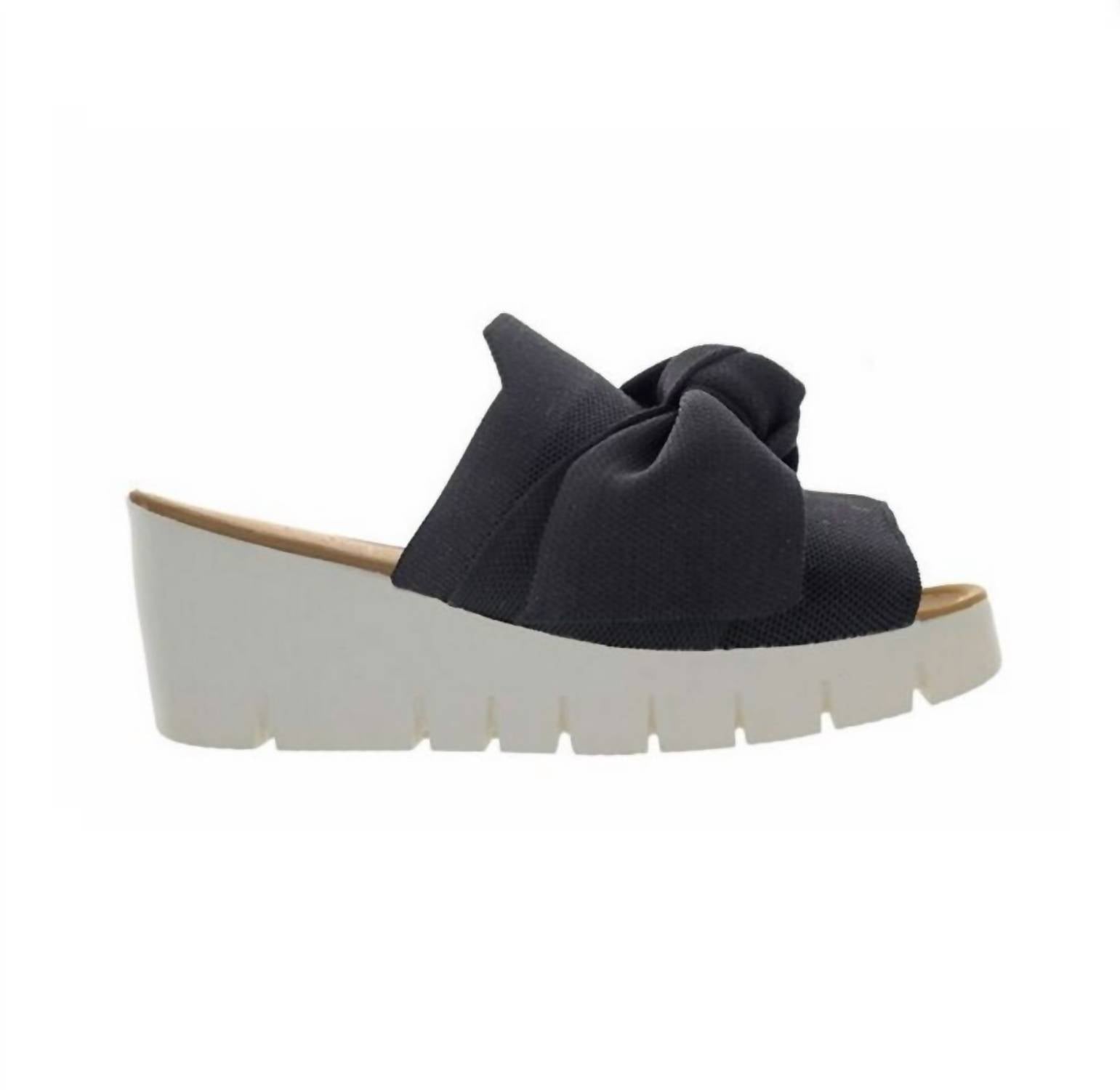 Flowy dresses, cropped pants, and even jumpsuits... this sandal works with them all! Step into elegance with the Women's Venti Freesia Wedge Sandal by BERNIE MEV, a sophisticated addition to your footwear collection in classic black. This sandal features an open toe style and a low wedge heel for comfort and style, complemented by a charming bow embellishment. Crafted with a synthetic rubber outsole and a textile upper and lining, this design includes a handwoven elasticated fabric for a snug fit. Ideal for the modern woman, these slip-on sandals bring a blend of sporty sophistication to any outfit.