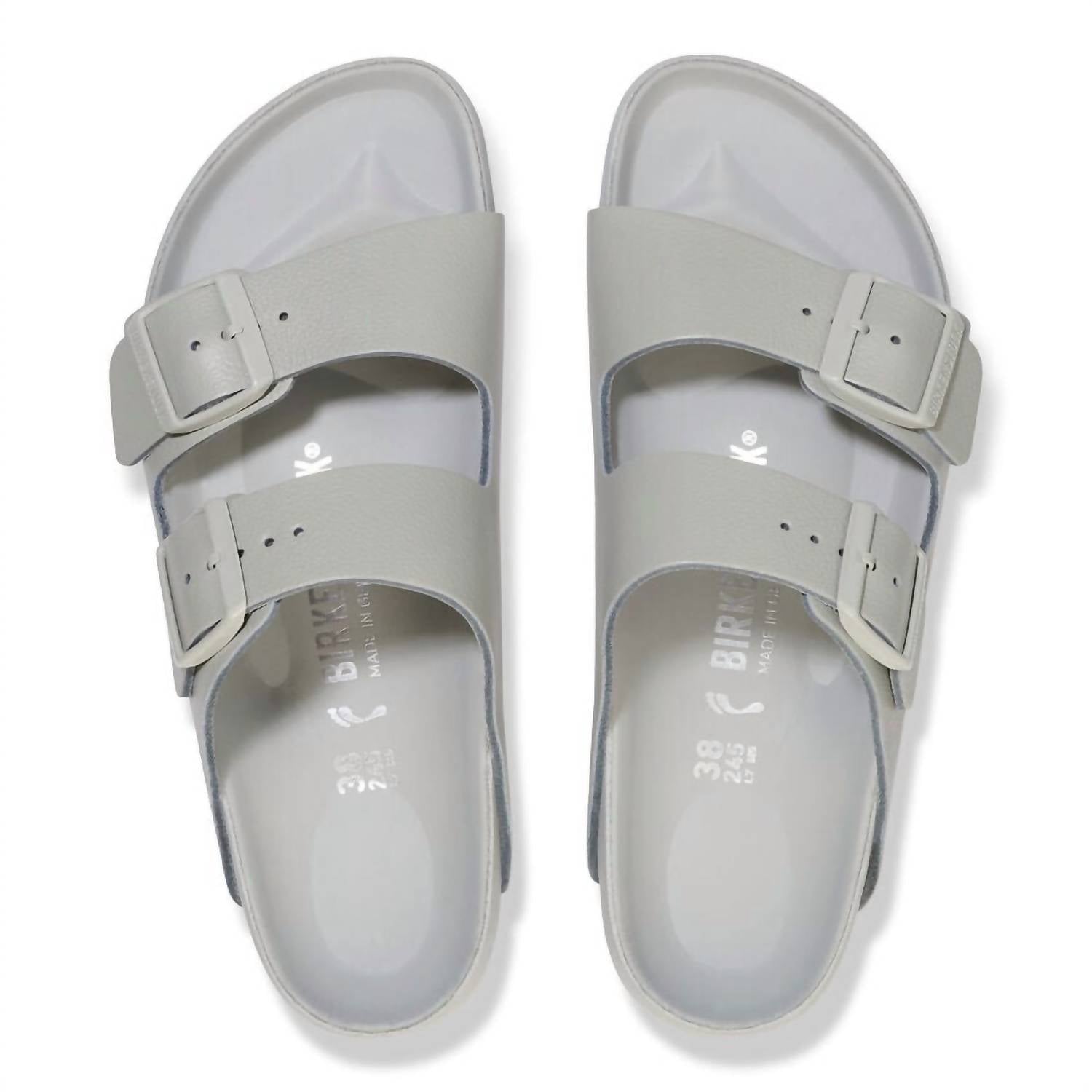 Classicly cute and all-day-wearable. We love this sandal. Elevate your style with the Women's Arizona Exquisite Sandals by BIRKENSTOCK in Mineral Gray, a testament to timeless design since 1973. Crafted in Germany, these sandals feature a premium aniline leather upper and an exquisite leather footbed lining for luxurious comfort. The contoured cork-latex footbed delivers custom support, while the flexible, lightweight EVA sole ensures ease with every step. Designed with two adjustable straps and metal pin buckles, these sandals blend streetwear trends with legendary comfort for everyday or holiday party wear.