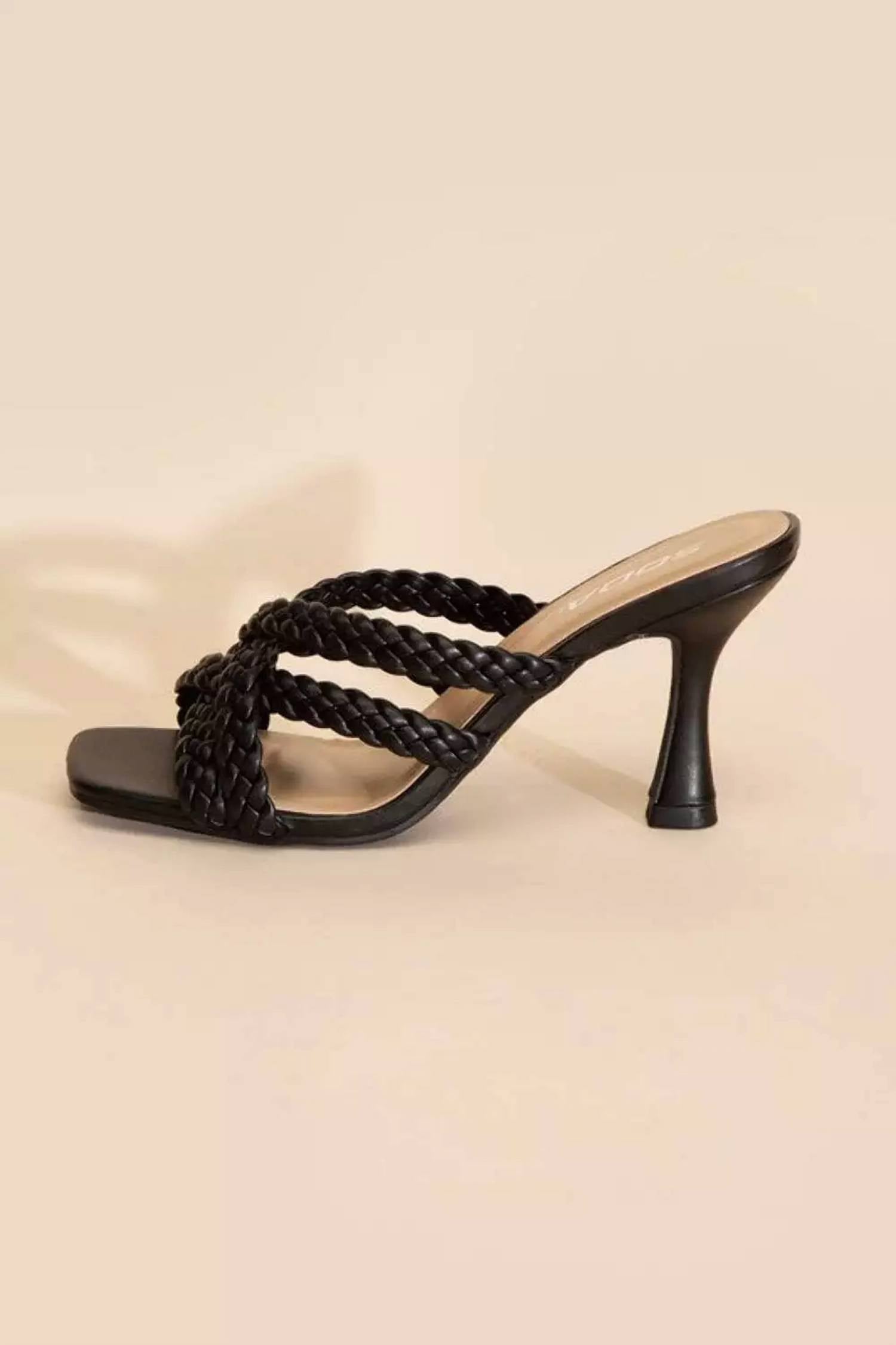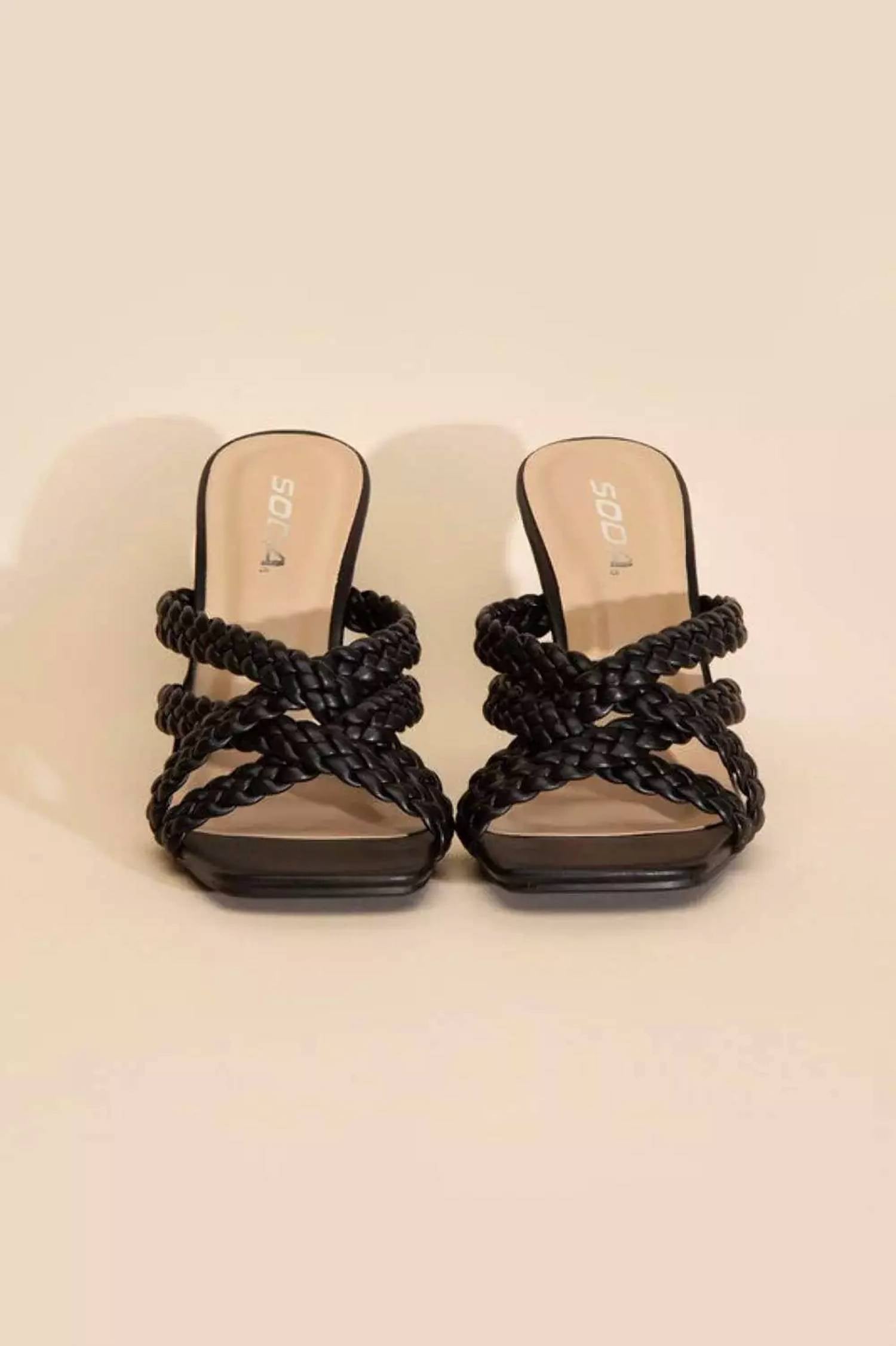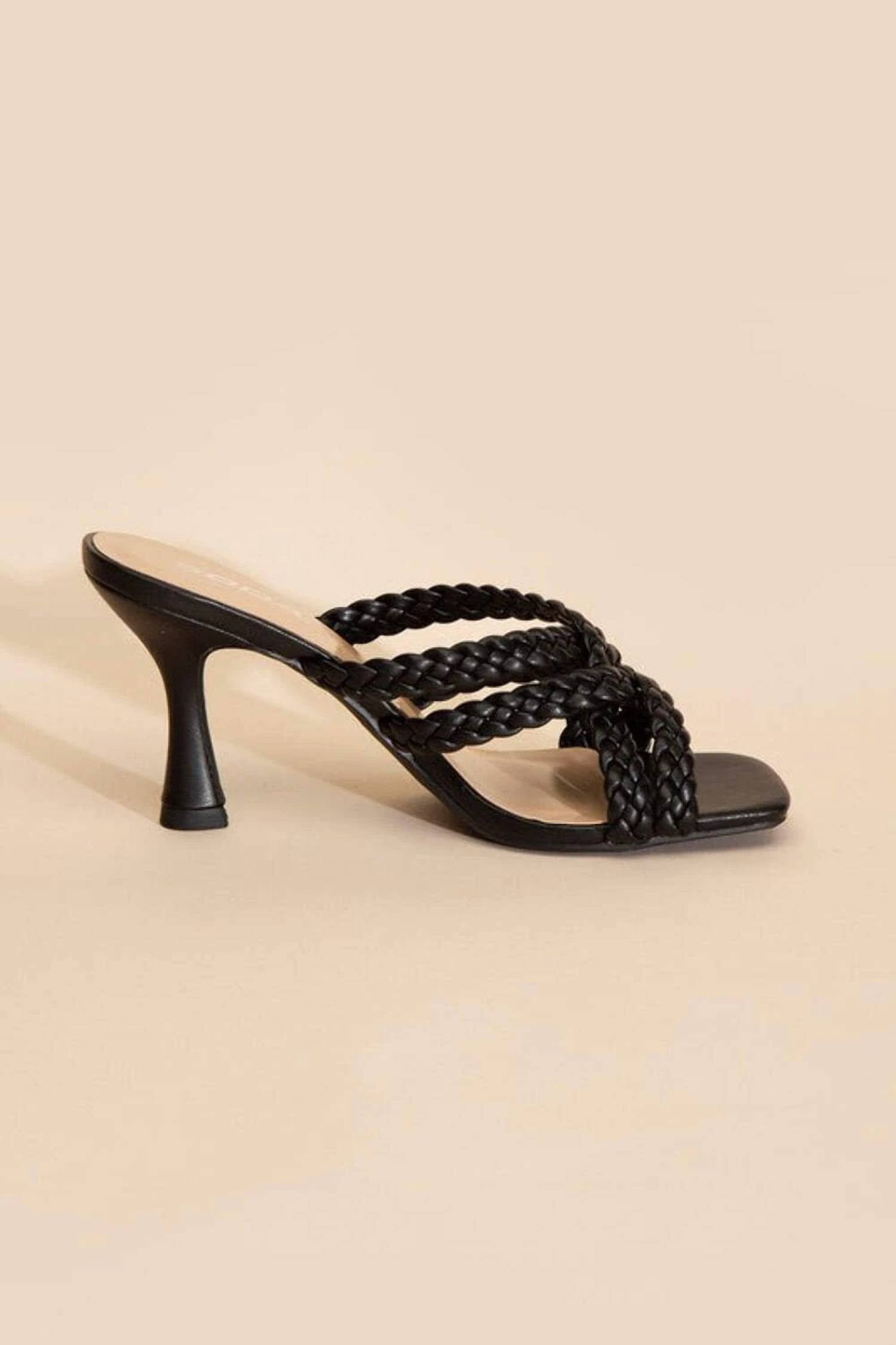 Flowy dresses, cropped pants, and even jumpsuits... this sandal works with them all! Step into elegance with the Women's Kellan Braided Sandals by CCOCCI, crafted for modern sophistication. These chic black sandals feature a sleek 3-1/4" stiletto heel paired with a square open toe for a standout look. Made from durable synthetic material, they flaunt stylish cross braided straps and a cushioned insole for optimal comfort. With a slide closure and imported from China, these sandals effortlessly combine style with convenience.