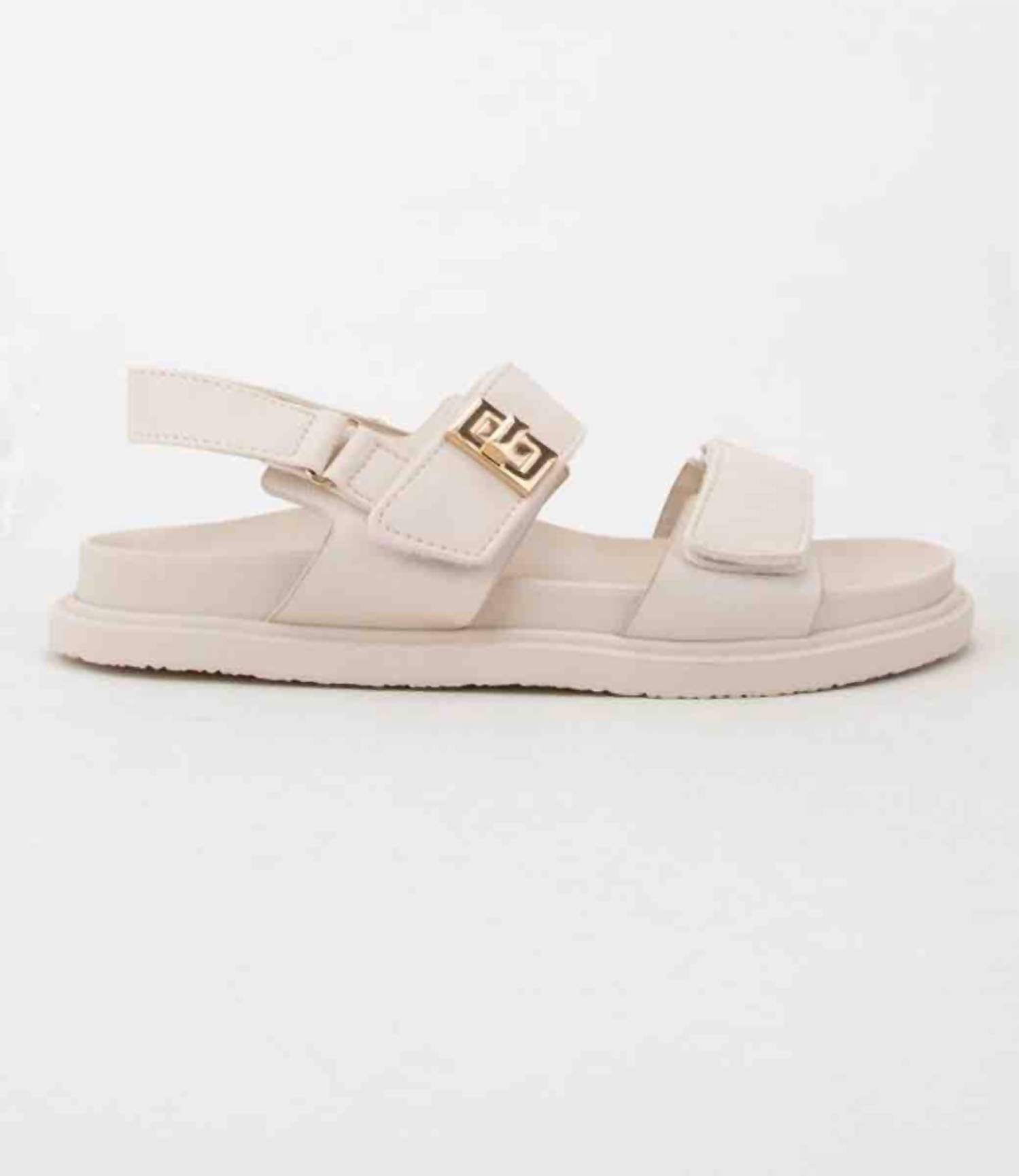Classicly cute and all-day-wearable. We love this sandal. Step into style with the Women's Mayara Slingback Sandal by CCOCCI, crafted in a chic Bone hue. This sandal features adjustable hook-and-loop and Velcro straps for a secure fit, paired with a comfortable molded footbed. Made from textured faux PU leather and accented with metallic hardware, it's designed to elevate any outfit. Closure: Adjustable hook-and-loop front strap.