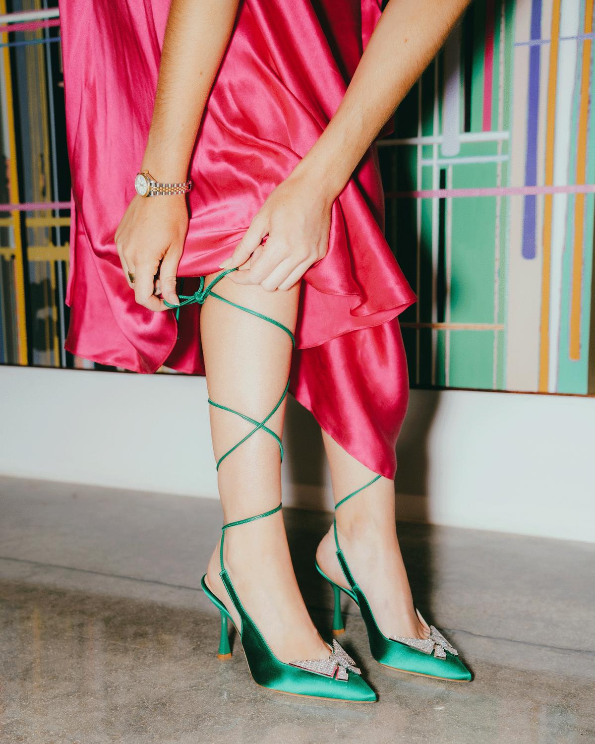 This sandal will take you from brunch to dinner and everything in between. Make a statement at your next evening event with the Women's Alena Pump by Che by Chelsey, presented in a stunning turquoise shade. Crafted in Italy, these exquisite stiletto heel sandals feature a refined pointed toe and are adorned with a sparkling crystal at the strap, adding a touch of elegance to any spring ensemble. The perfect footwear choice for those seeking to stand out while maintaining an air of sophistication.