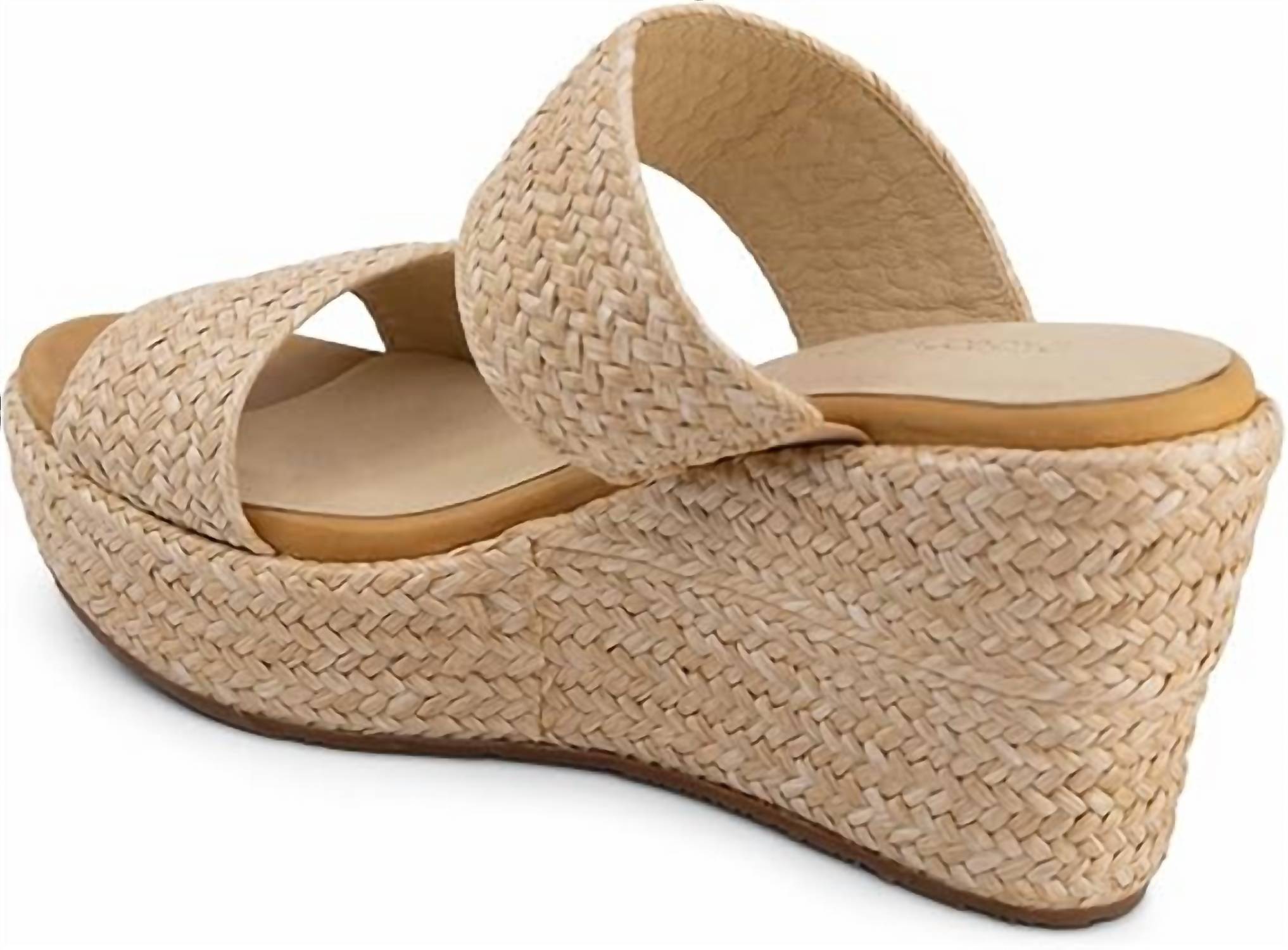 Flowy dresses, cropped pants, and even jumpsuits... this sandal works with them all! Step into summer with the Women's Ilaria Sandal by Chocolat Blu, crafted for a Boho Chic appeal. This sandal, in Natural Raffia, is perfect for vacations with its high wedge heel giving you an elegant lift. Designed with a peep toe, it's ideal for warm weather outings.
