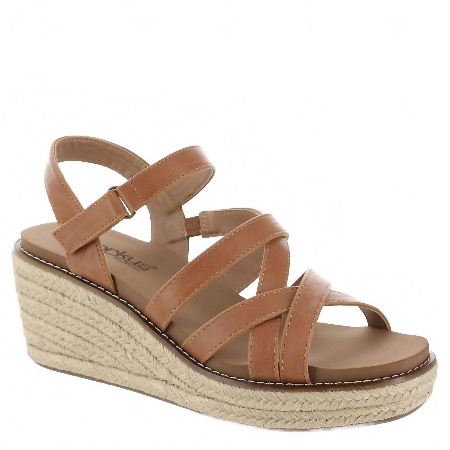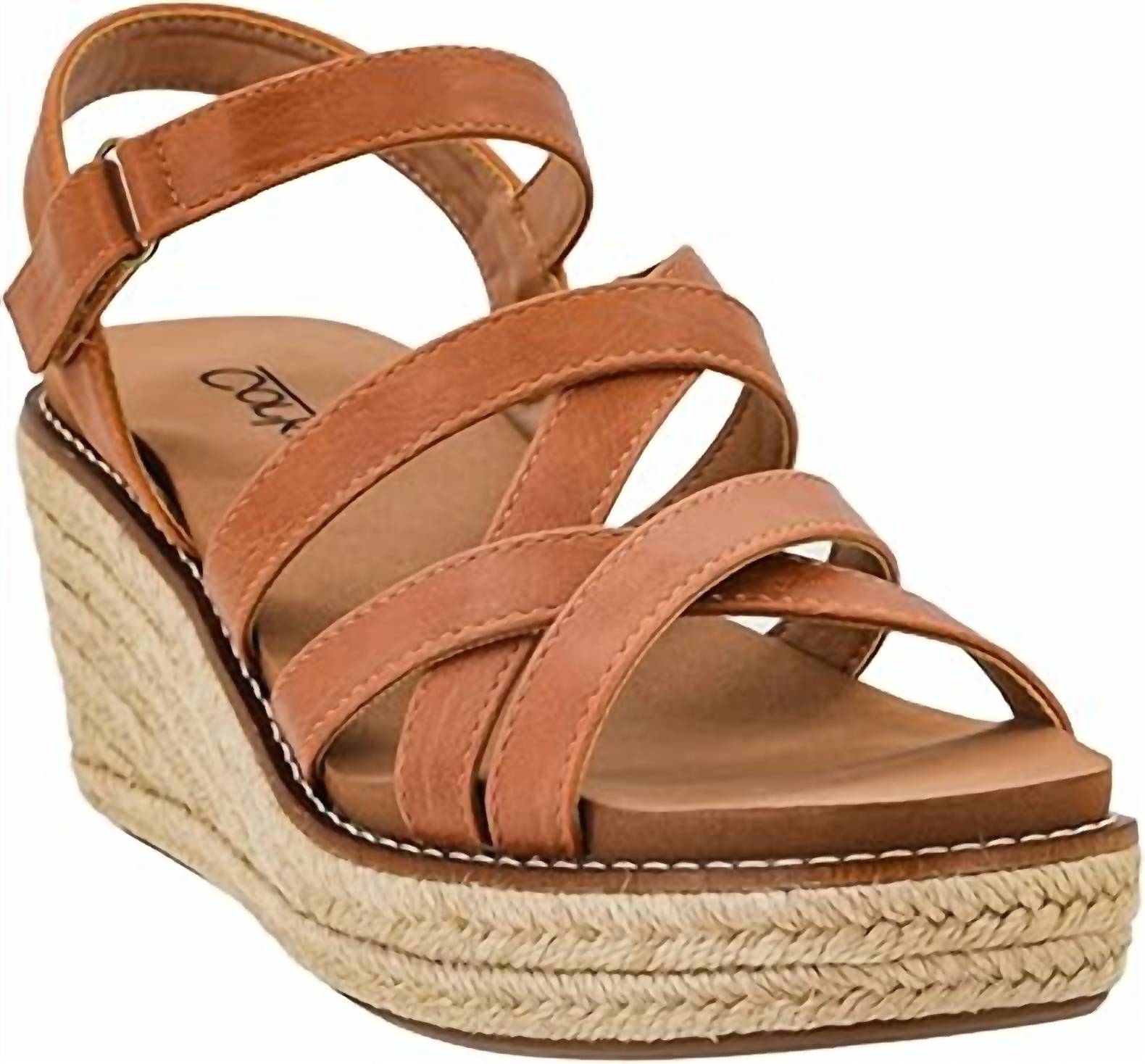 Timeless wedges that will be relevant season after season. Step into style with Corkys Footwear's Women's All Nighter Brown Strappy Wedge Sandal in chic cognac. Perfect for a spring holiday party, these wedges feature an open toe and medium width, designed to offer comfort while ensuring a fashion-forward look. With a mid-heel height ranging between 2 1/4" and 3", these sandals boast a practical wedge heel style, blending sophistication with ease-of-wear for any workwear or Easter occasion. Elevate your evening or daytime ensemble with these versatile wedges, seamlessly crafted for modern women.