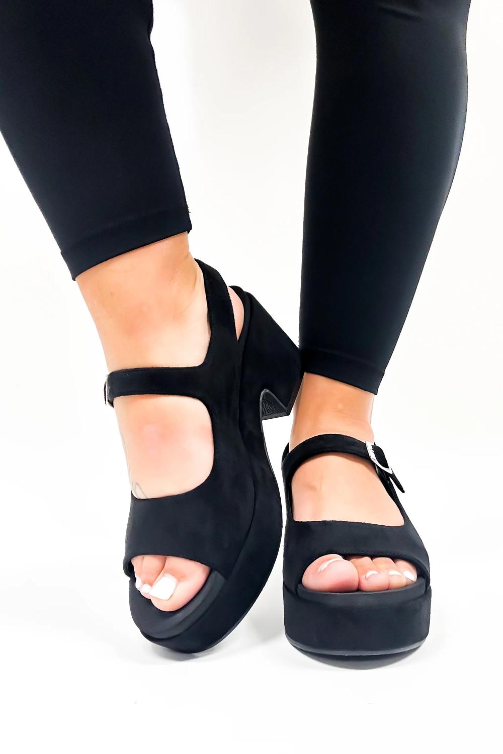Flowy dresses, cropped pants, and even jumpsuits... this sandal works with them all! The Corky's Women's Miss Behavin Sandal fuses style with comfort, perfect for summer evening events. Featuring a chic black color and an elegant buckle detail, these sandals are designed with a peep toe shape and block heel style, offering a polished and monochrome look. Ideal for those who appreciate a combination of breathability and elegance, the sandals have a mid heel height ranging from 2 1/4 to 3 inches. Note: If you are a half size, it is recommended to size up for the perfect fit.