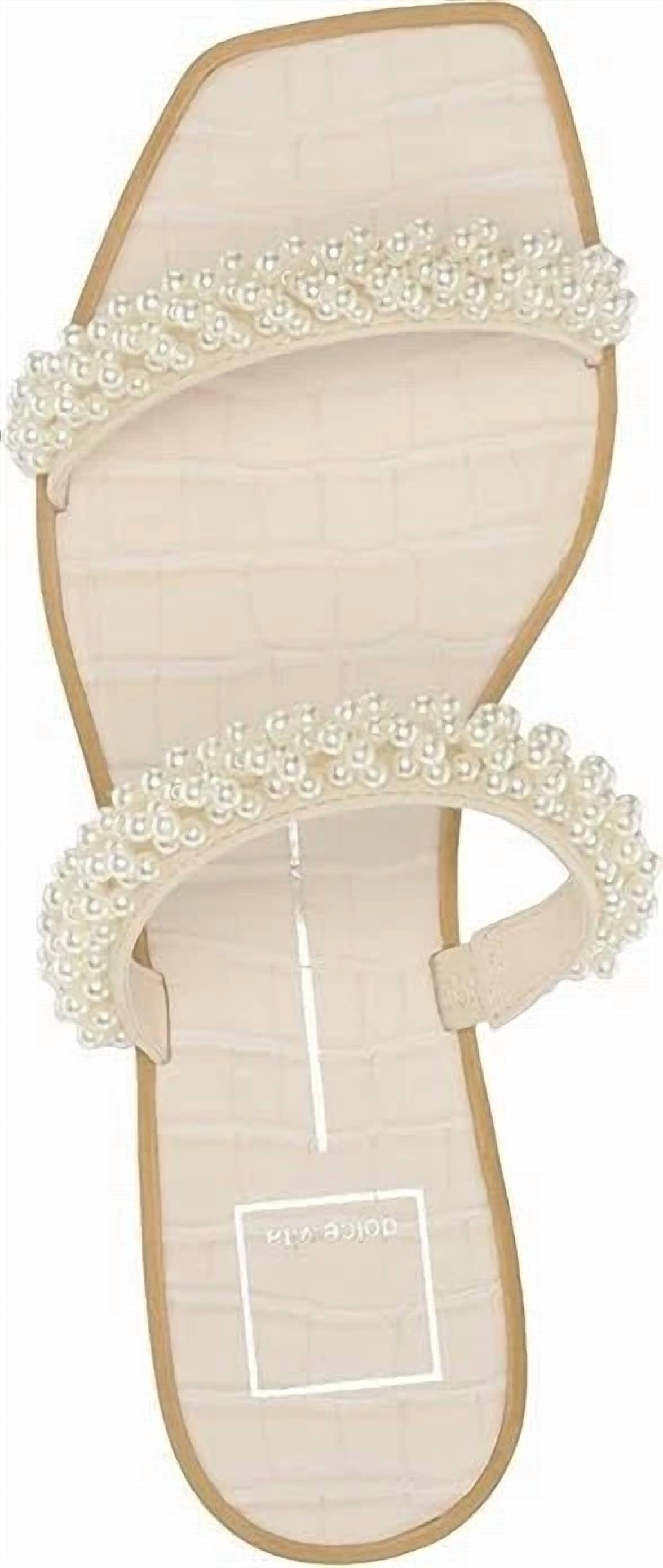 Classicly cute and all-day-wearable. We love this sandal. Discover the Ivee Sandals by Dolce Vita, a chic addition to your spring wardrobe in elegant Vanilla Pearls. These sandals feature delicate double straps with a trendy braided look, offering a minimalist yet stylish appeal. Designed with a synthetic upper, outsole, sock, and lining, these flat slide sandals are perfect for effortlessly chic occasions. With a squared toe and flat heel under 1", they are the go-to choice for a comfortable yet fashionable outing.
