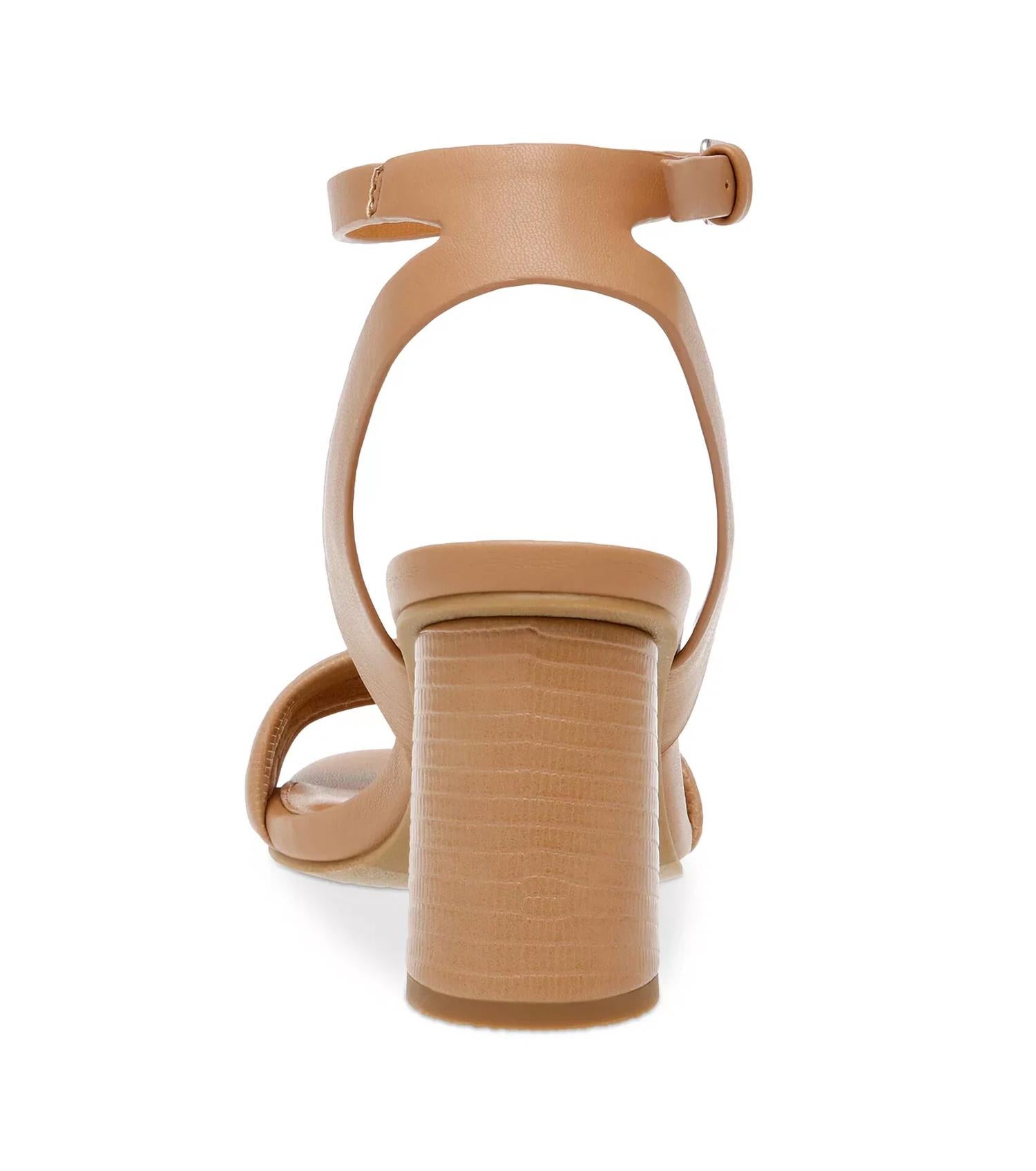 These sandals feature sculpted heels and a round-toe design with an ankle strap and adjustable buckle closure. They have a cushioned insole with memory foam for added comfort. Made with a manmade upper, lining, and sole, they offer a 2.75" heel height. Imported.