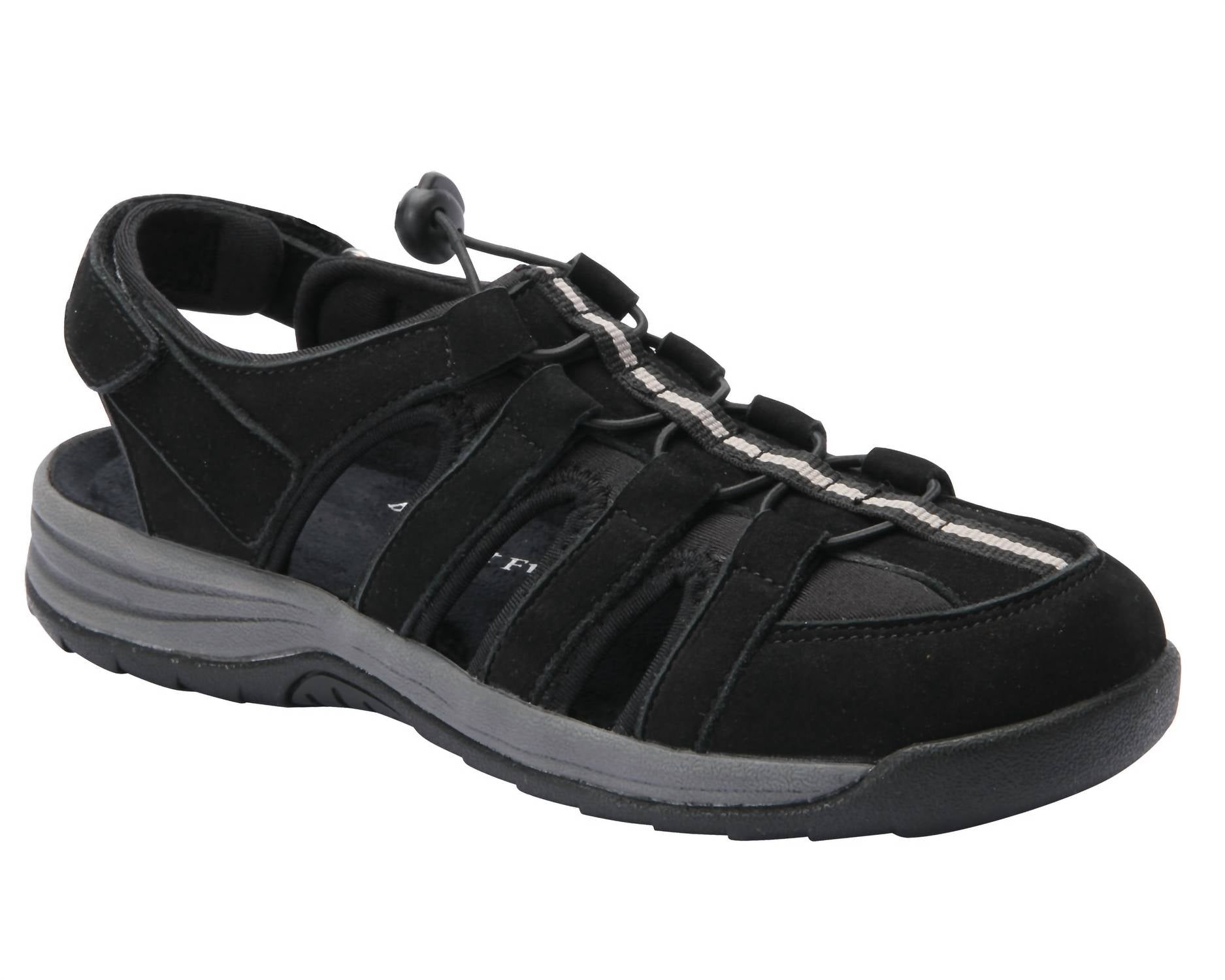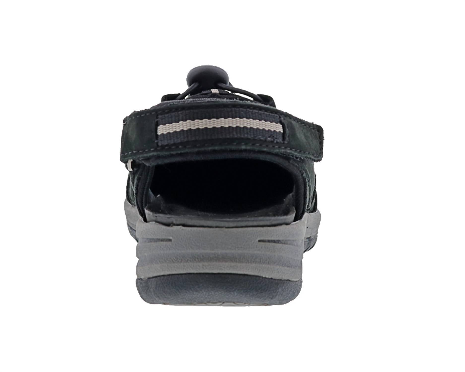 This sandal will take you from brunch to dinner and everything in between. Introducing the Women's Element Sandals by Drew Shoes, crafted from luxurious black nubuck leather for a durable yet stylish look. These sandals feature a soft, stretchable lining and a removable EVA/memory foam footbed with a sueded top cover, providing double depth and accommodating prescribed orthotics for custom comfort. The lightweight rubber outsole with an EVA wedge midsole and a tempered steel shank ensures stability and support, loop adjustable heel strap and quick draw bungee lacing system offer a tailored fit.