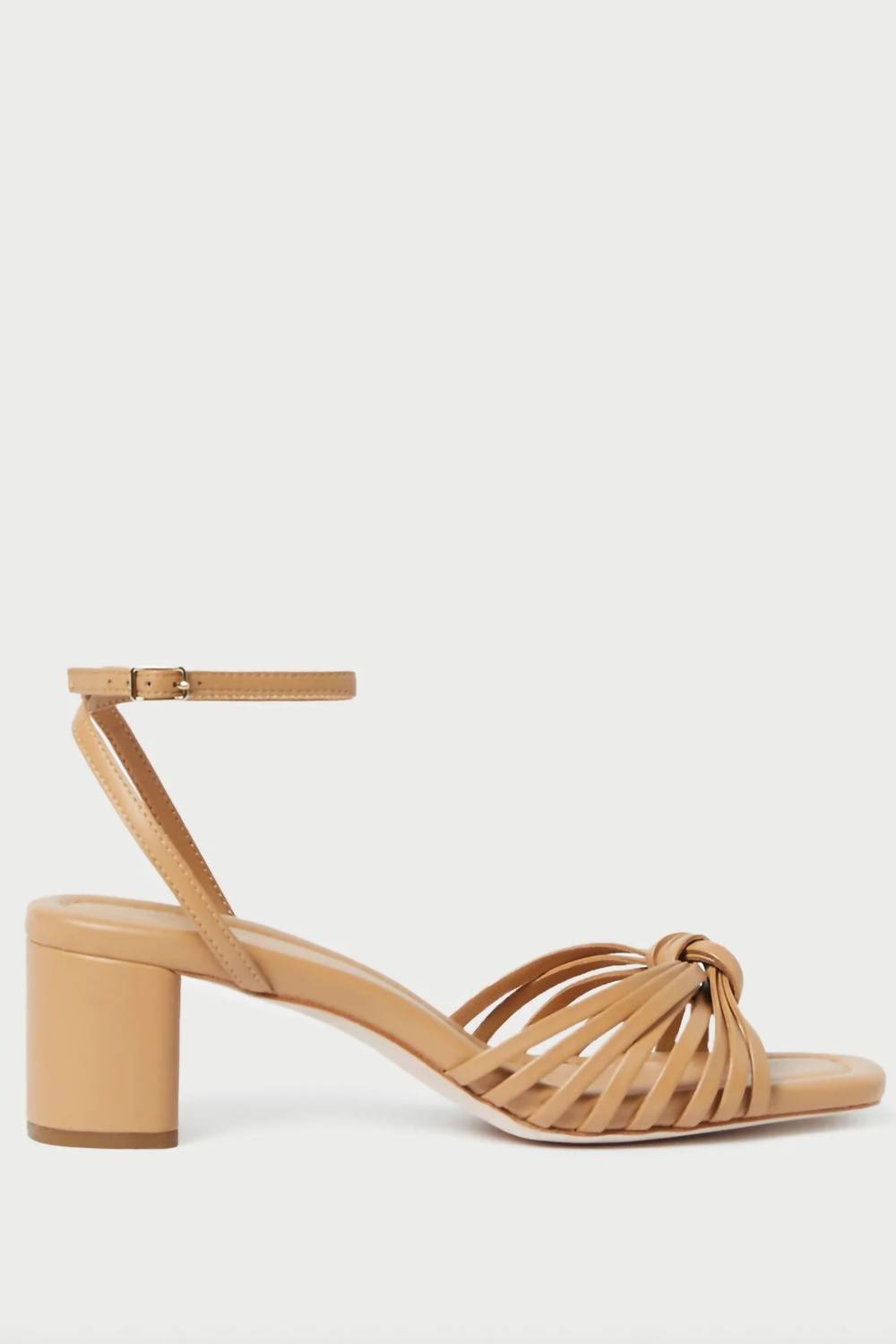 Elevate your wardrobe with the Loeffler Randall Olivia Leather Knot Mid Heel Sandal in a sophisticated Dune hue. Crafted from premium nappa leather, this sandal features an elegant pieced mignon upper and an open toe design. The adjustable ankle strap ensures a secure fit, while the 2-inch block heel provides comfort perfect for all-day wear. Ideal for spring weddings and other celebrations, this versatile piece embodies a chic boho style.