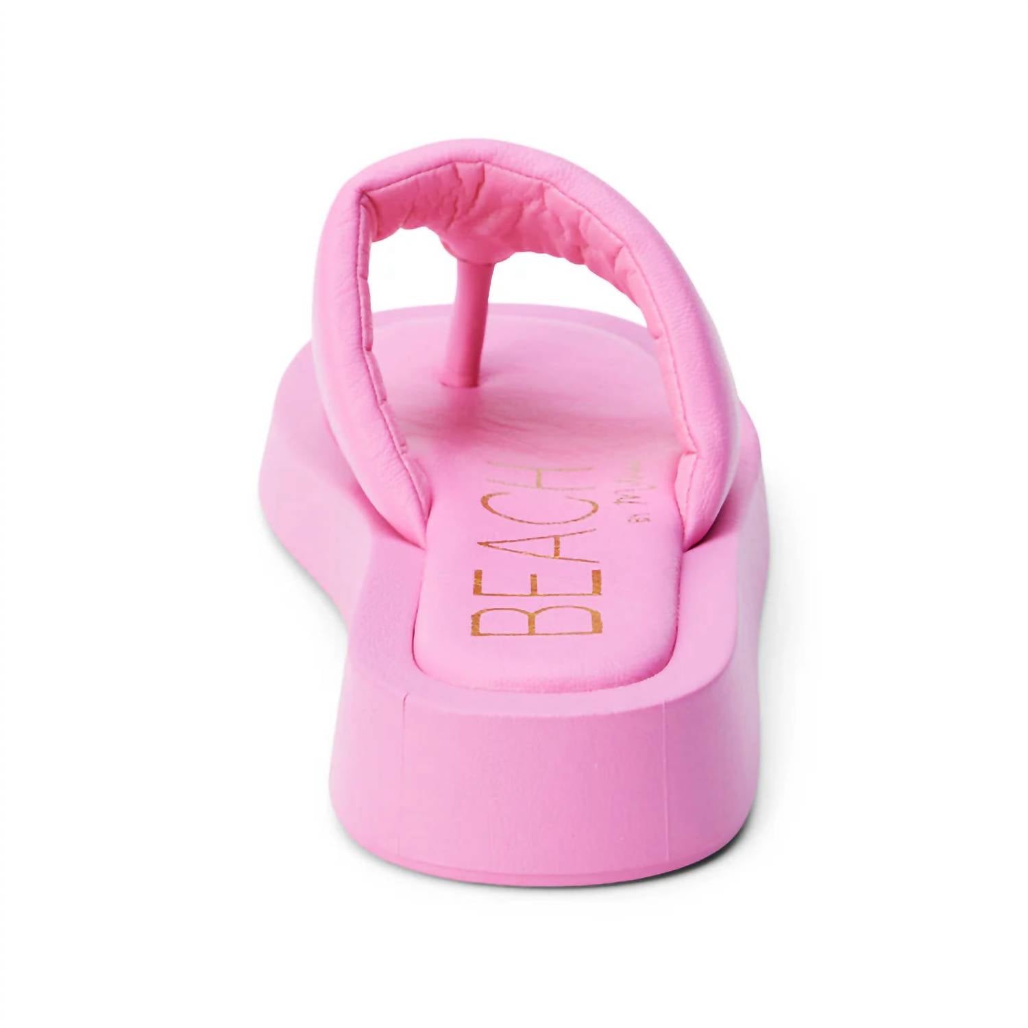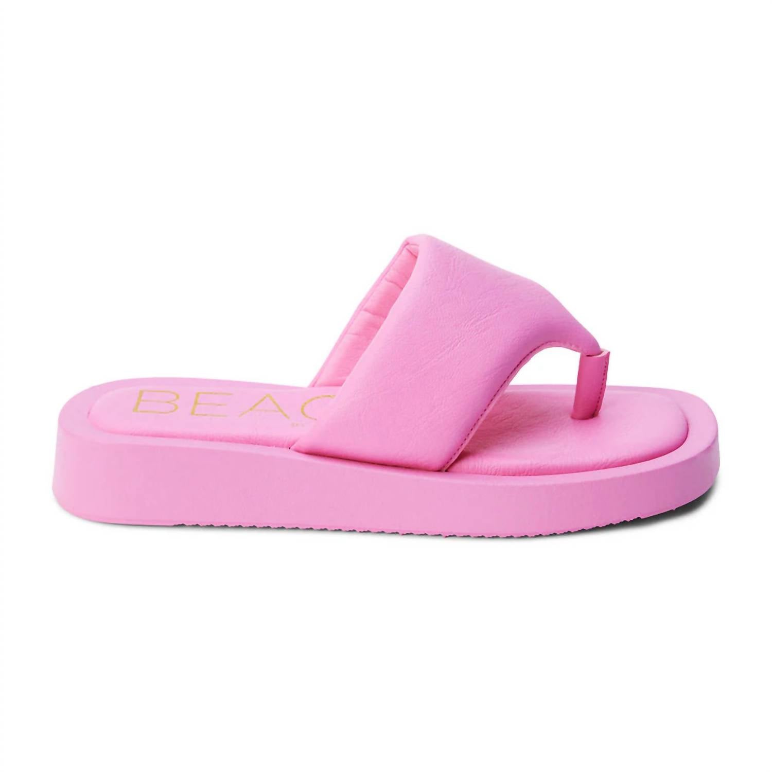 This sandal will take you from brunch to dinner and everything in between.By Beach by Matisse footwear. Synthetic leather upper. Manmade outsole. 1.25 in / 3.18 cm heel. 0.75 in / 1.91 cm platform. Synthetic leather lining. Padded insole. Slip-on style. Imported. Whole sizes only; for 1/2 sizes, order next size up.