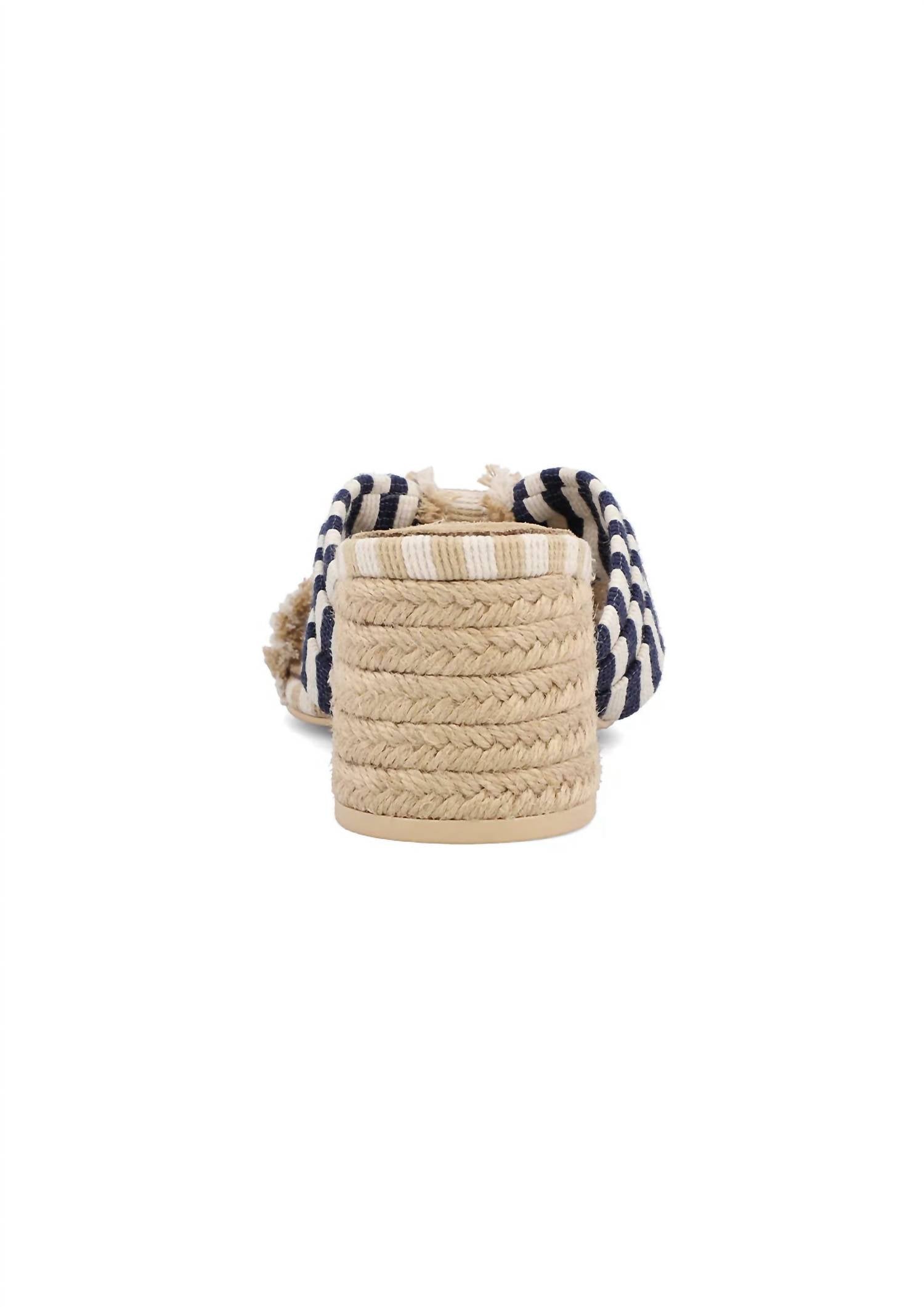 This sandal will take you from brunch to dinner and everything in between. Introducing the Women's Isandra Raffia Bow Heel Sandal by MIA, a striking addition to your summer wardrobe. These navy sandals feature an open toe and a bold striped bow, set on a boho chic raffia style. Designed with a block heel measuring mid-range (2 1/4"-3"), they offer both style and comfort. Perfect for any vacation, these sandals are tailored for fashion-forward women seeking daring elegance.